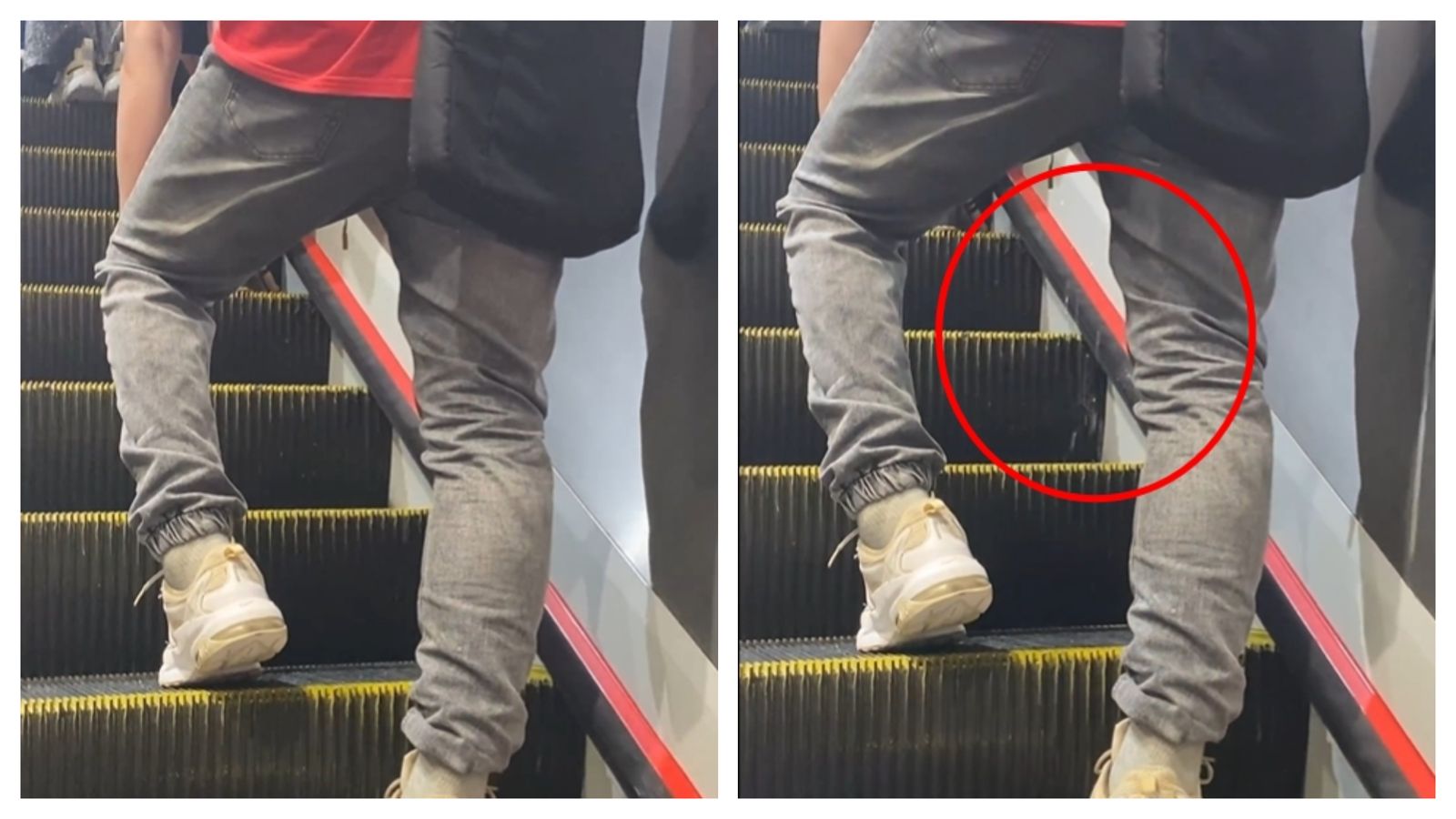1名網友昨(23日)於Threads發文,「搭手扶梯也要小心了!怎麼有人在這尿尿.. 嚇到!直接往後退三格。」透露她在忠孝復興站轉乘文湖線搭乘最長的電扶梯時,直擊紅衣男子兩腿間緩慢流下疑似小便的不明液體,她通報站務人員,對方稱會做清理。