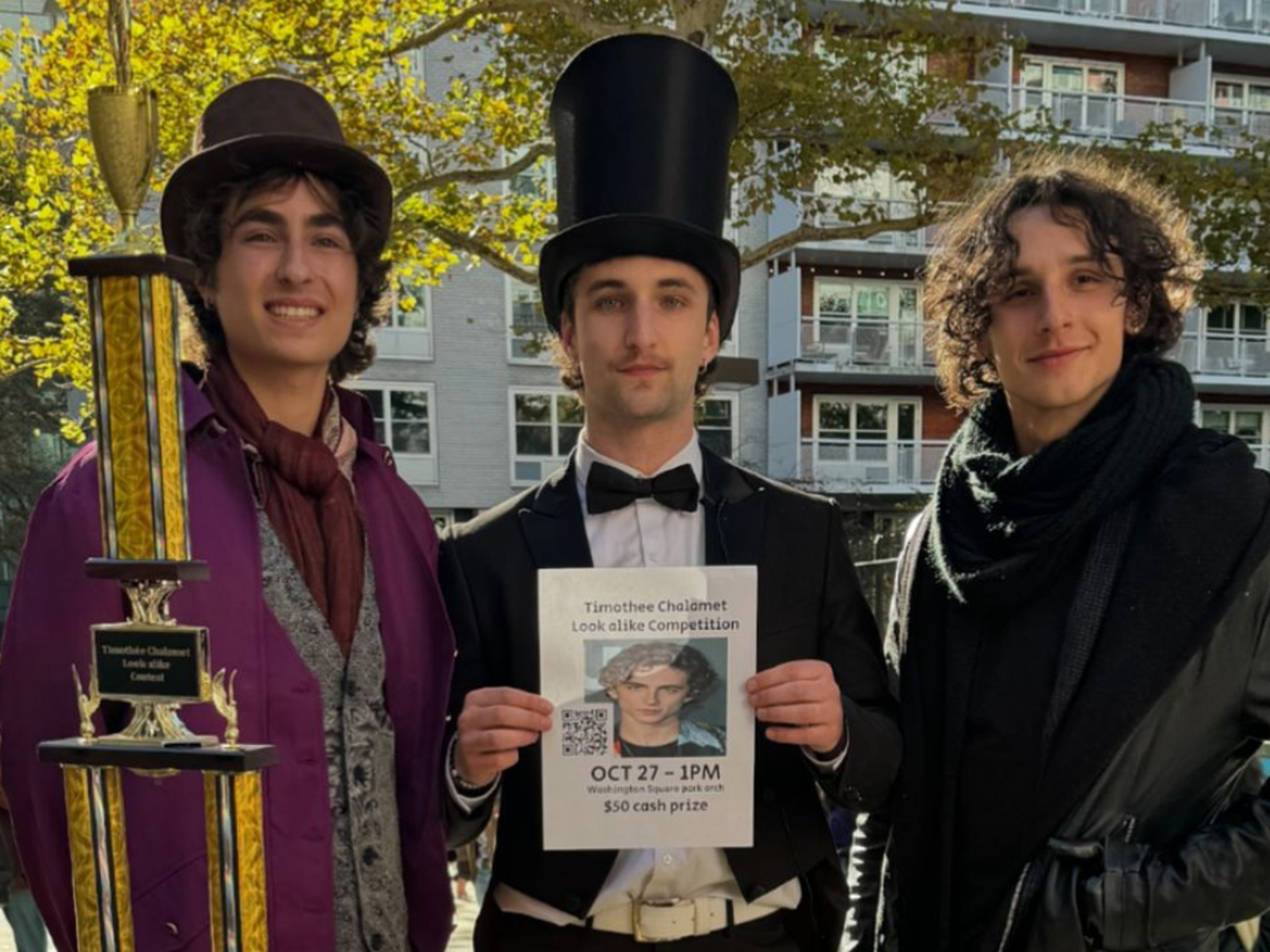 提摩西夏勒梅模仿大賽的優勝選手,冠軍是麥爾斯(左一)。(翻攝自Anthony Po官方Instagram)發布時間:2024.10.28 14:57 臺北時間