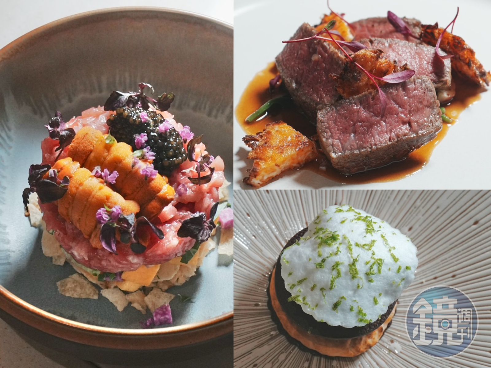 菜單上也能看到不少日本美食元素如海鮮丼、壽喜燒、日本A5和牛,餐點上桌卻能發現主廚藉由精選優質當令與在地物產,直接將這些熟悉菜色翻玩至不同境界。我最喜歡的「海鮮脆片丼」單看主廚在開放式廚房的堆疊過程,期待指數就跟著節節升高。自製馬鈴薯脆片取代米飯的澱粉角色,口感變得輕盈酥脆,更無負擔。接著淋入絲絨椪醋醬及薄荷油,由上至下舀取一杓,滿足品嘗日本黑鮪魚中腹鮮嫩化口、Ossetra魚子醬躍動鹹鮮、膨潤玉子燒、爽脆紫山藥於唇齒間的鮮美協奏及多重口感。