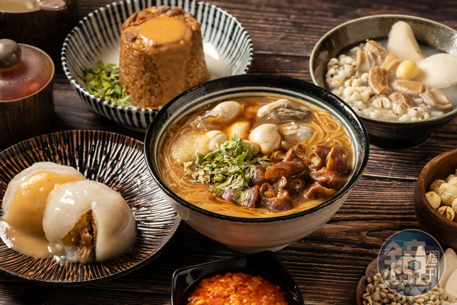 這碗麵線使用需要拉製和蒸煮長達12小時、純手工製作的麵線,麵線久煮依然Q彈;老闆認為挑選CAS認證電宰廠的新鮮大腸也很重要,大腸沒有腥味,滷製配方包含十幾種中藥,如八角、小茴香、甘草等,讓大腸嘗起來入味又有層次;加上大骨熬8小時的湯頭,和裹上薄粉汆燙的嘉義東石鮮蚵,就是美味保證。