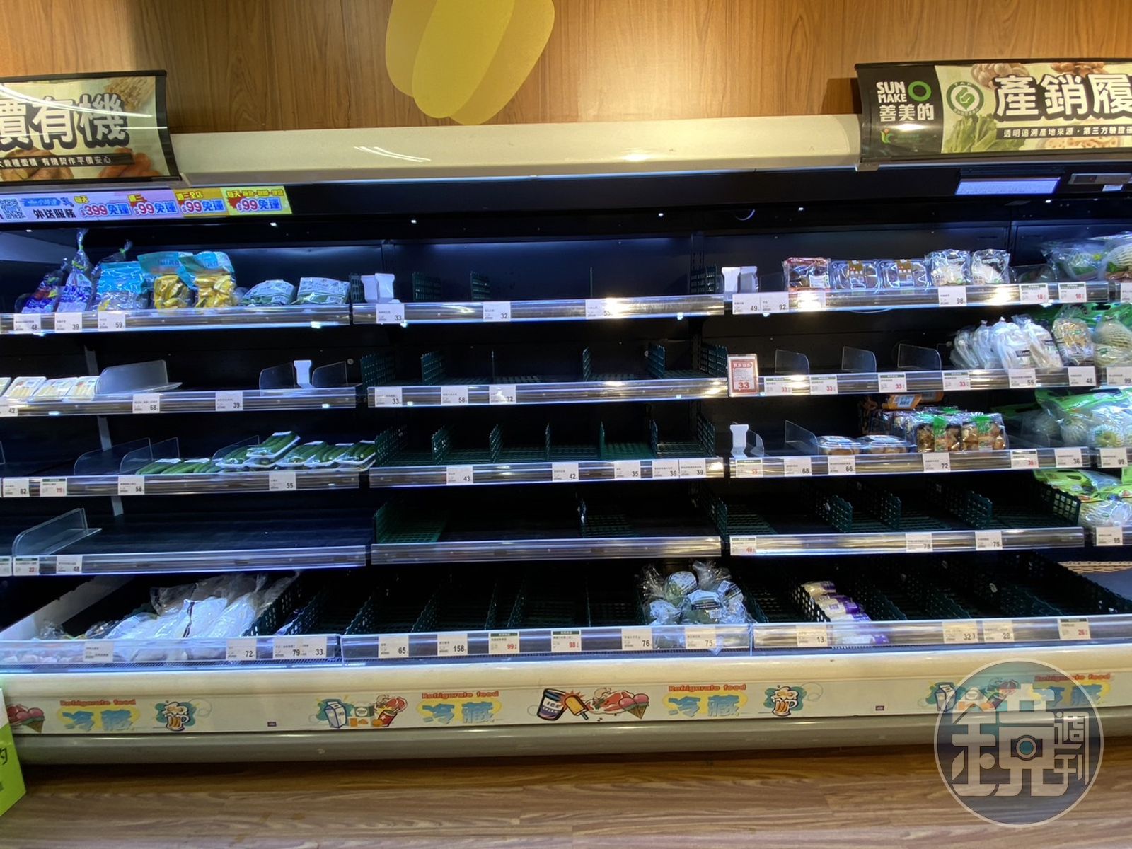 有民眾指出,該全聯的蔬菜區,幾乎所有的綠色蔬菜都被搶購一空,綠色蔬菜剩下小黃瓜,其餘還有菇類、玉米筍等。此外,泡麵架的泡麵也被掃空不少。排隊結帳人潮更是壯觀,民眾手提滿滿購物籃,都在為颱風天屯糧做準備。