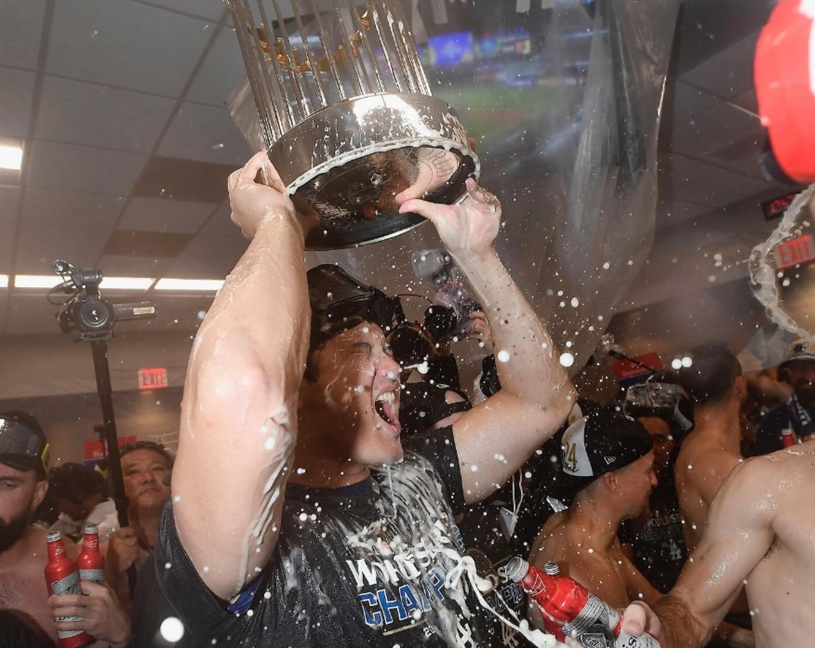 這是道奇隊2020年以後再度奪冠,也是大谷翔平從天使隊轉戰後首度嘗到冠軍滋味,眾人在拿到獎盃後開心慶祝,現場氣氛十分熱絡,媒體也一擁而上,紛紛找球員採訪賽後感想。