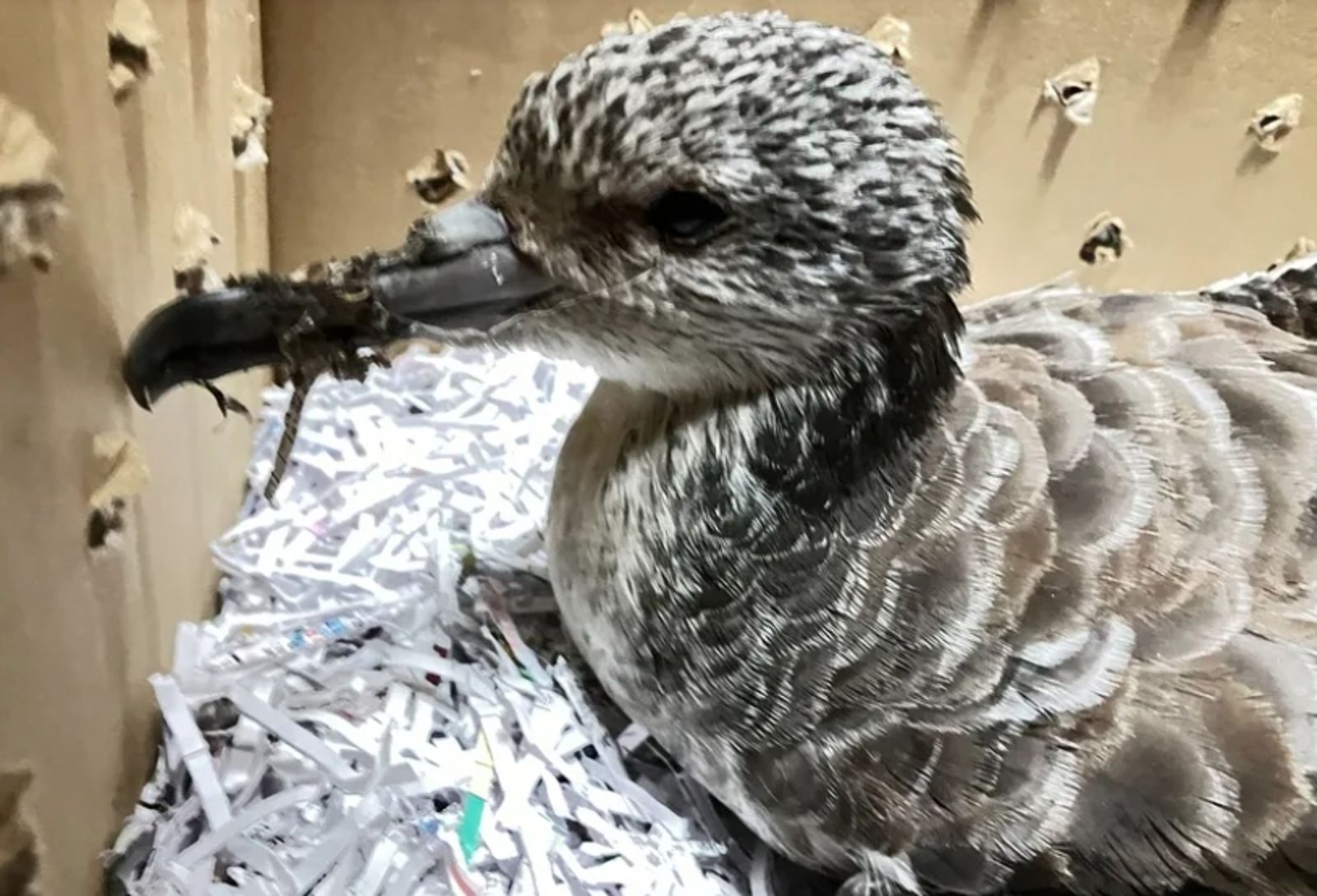 暨南國際大學附屬高級中學地球科學教師曾世佑昨(4日)下午在校園地下停車場發現一隻虛弱無法飛翔的海鳥,推測牠可能因颱風受困內陸,於是小心將牠放入紙箱,並上傳至「台灣野生鳥類緊急救助平台」求助。