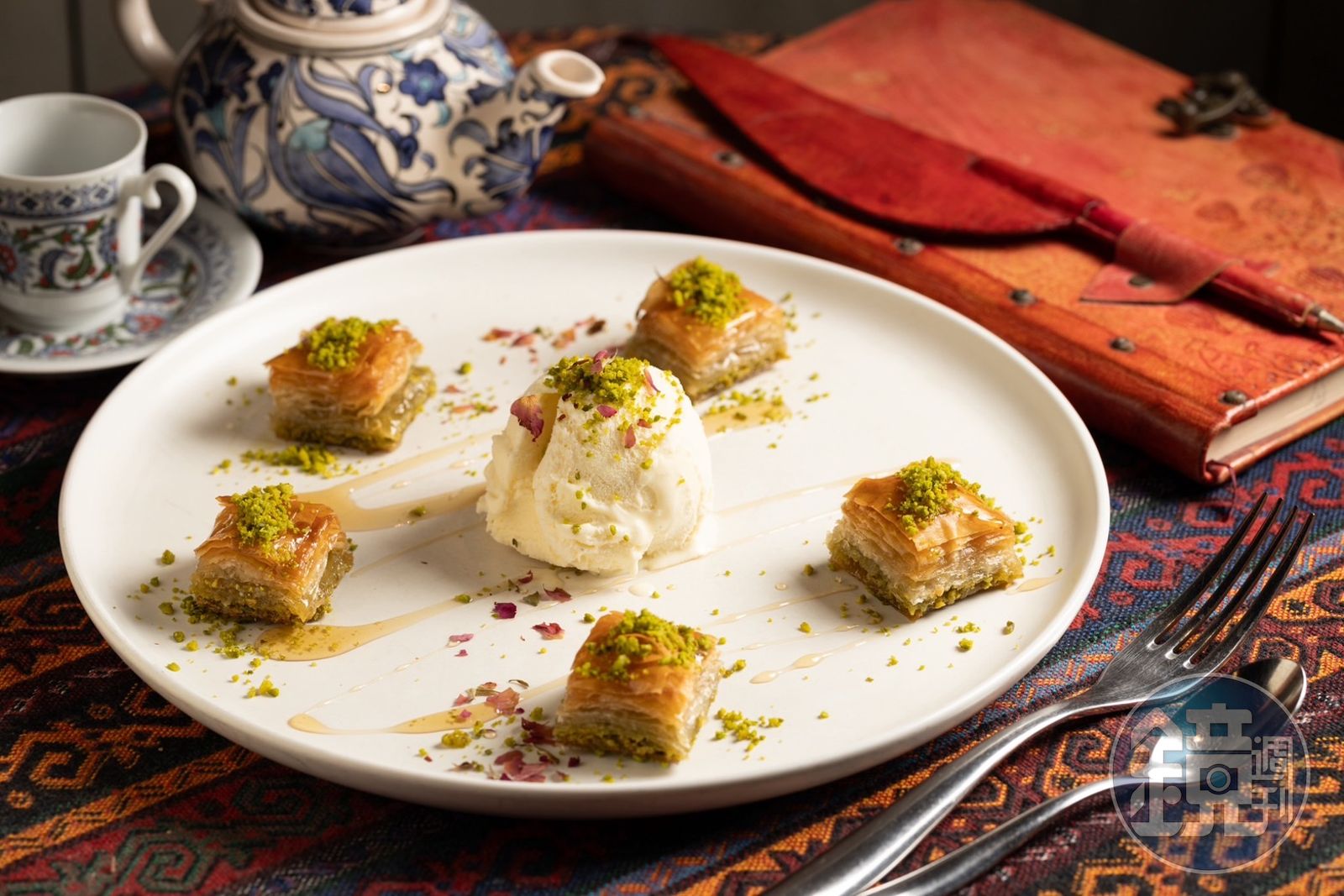 「薄果仁酥餅」(Katmer)用薄麵皮包裹著開心果、堅果與莫札瑞拉起司,整體口感不僅多了碎堅果的脆口,還有鹹甜交錯的柔順奶香。土星咖啡的「土耳其軟糖」(lokum)不僅是甜度改良版,連口感都沒有擾人的黏牙感。(250元/份)Steven認為,飲食沒有所謂「最道地」,相較之下,他更追求的是風味的呈現:「畢竟習慣會變,像是古代吃重鹽重糖,現在的人則會追求更健康的飲食。」他也人間清醒的表示:「如果為了追求道地與正統,反而因口味不被接受,不是更難將在地文化推廣出去嗎?」