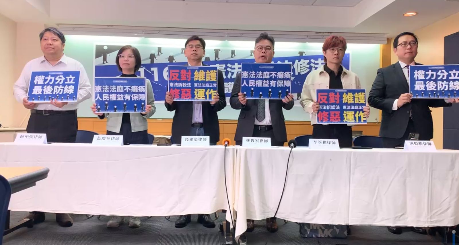 針對近日立法委員所提出《憲法訴訟法》第4條、第30條、第43條及第95條等條文修正案,大幅提高憲法裁判的作成門檻,但也造成大法官若缺額或依法不能行使職權,而未達作成憲法裁判之門檻,憲法法庭將因大法官人數不足而無法作成任何憲法裁判,形同實質停擺。