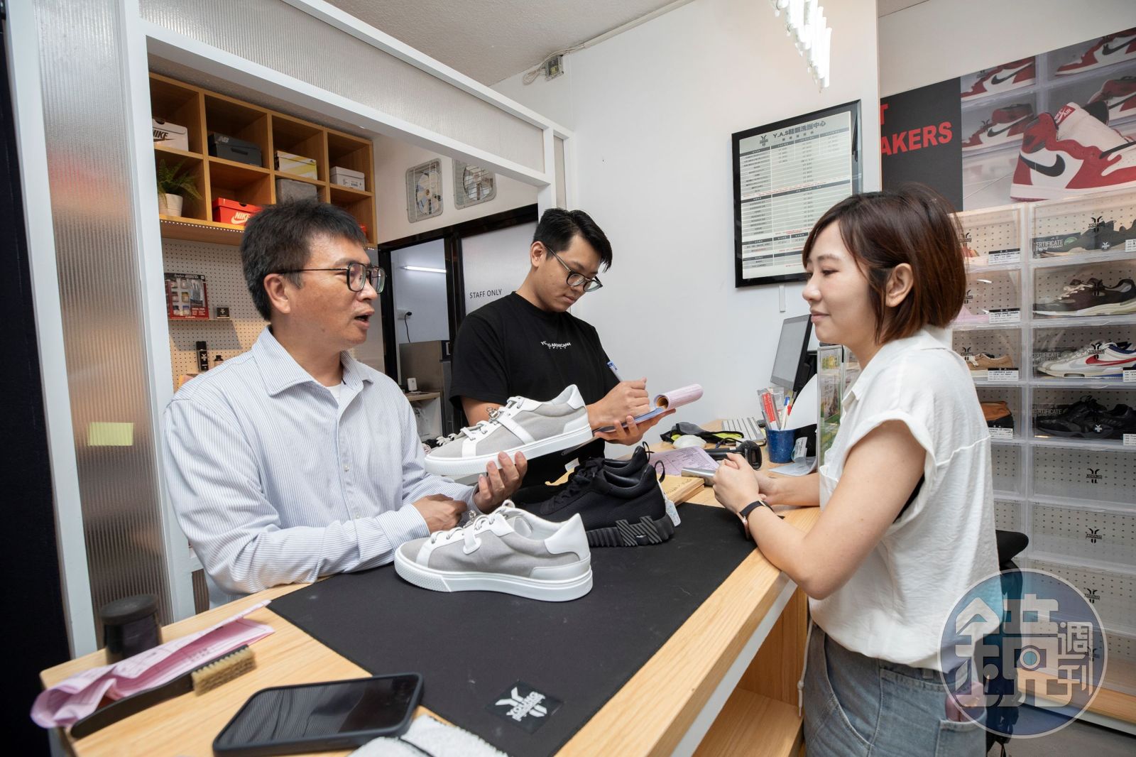 送洗鞋的年齡,比買鞋族群年紀稍高,一般是22到38歲最多,不過,像女孩子精品鞋很多,此區塊的年齡層便會再拉高一些。關於養護方面,郭子仲說:「過去我就是做運動鞋出身,我們對運動鞋很了解,氧化是必然的過程,養護就是延遲它的氧化。不管洗或護,我們比別人強的地方,就是能做到每一種材料都能應對。」