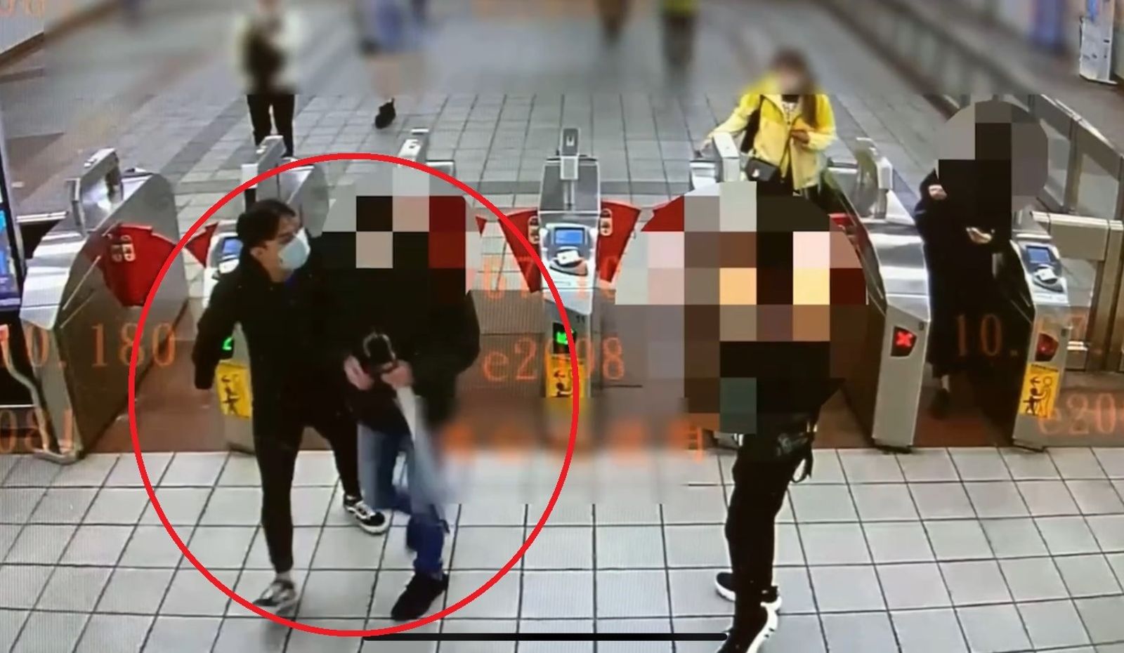 警方尾隨陳男進入捷運站,立刻在閘口將他攔查逮捕(紅圈)。(翻攝畫面)發布時間:2024.11.13 18:17 臺北時間