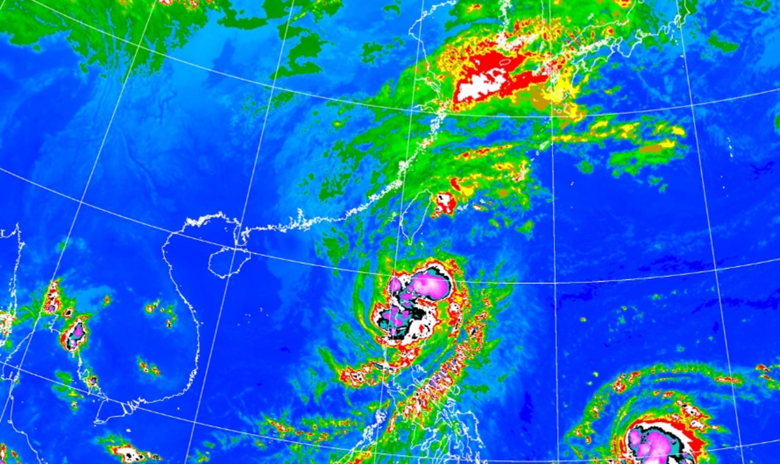 中央氣象署今(14日)更新天兔颱風海上陸上颱風警報,21時的中心位置在鵝鑾鼻的南方約350公里之處,以每小時16轉11公里速度,向北北西轉北進行,七級風平均暴風半徑150公里。天兔過去3小時強度略為減弱,中心目前在鵝鑾鼻南方海面上,向北北西轉北移動,其暴風圈將逐漸進入巴士海峽,對屏東及恆春半島將構成威脅。