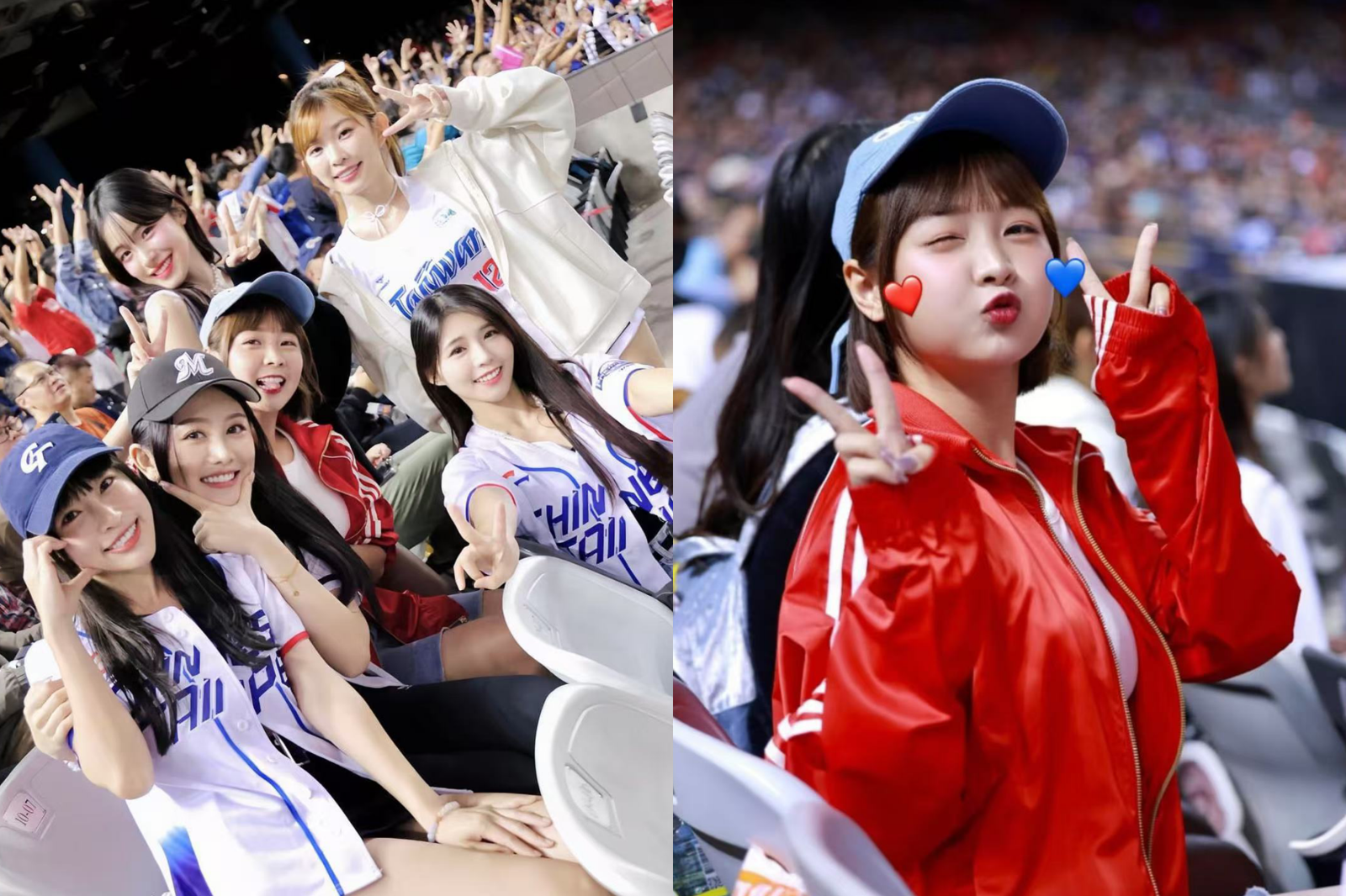 同區觀賽的還有籃籃、若潼,CT Amaze啦啦隊女孩在下半場換上紅色上衣和白色短褲,繼續用不同造型為中華隊助陣。值得一提的是,籃籃也被發現穿著紅色外套,坐在場邊手舞足蹈跳起應援舞,陸筱晴笑虧:「你可以上場了!」而一旁的李多慧更是拖著籃籃,讓籃籃笑著誇張地伸出腳、跨大步做出要上舞台的模樣,綜藝感爆棚。