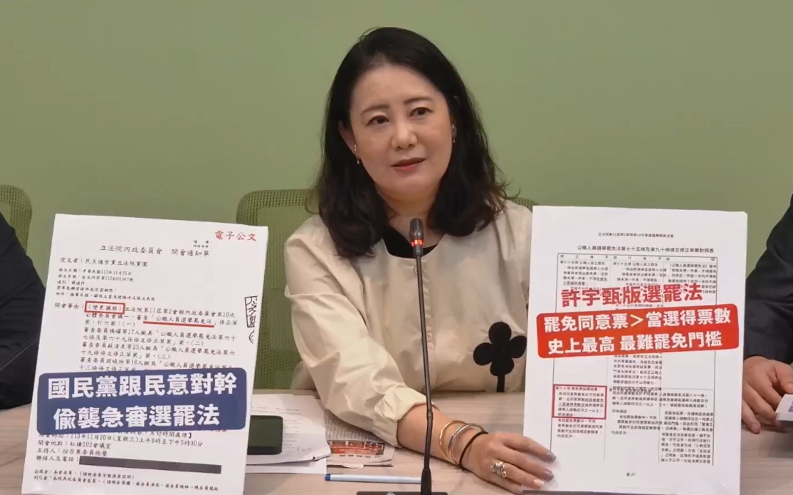 藍白先前提案修改《選罷法》規定,加嚴罷免連署相關規定,引發朝野衝突,未料連署規定尚待擇期再議,藍委許宇甄又提案,增訂「罷免同意票數超過被罷免人當選票數」,並將於20日在內政委員會審查,掀起議論。