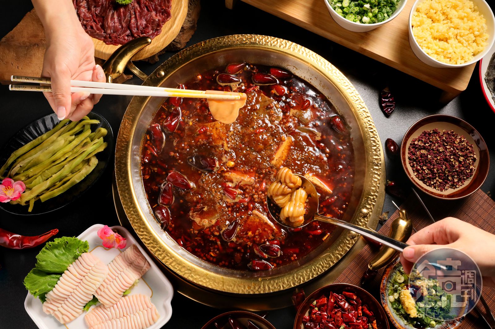 今年9月新開幕的小成都麻辣火鍋,店外頭有好幾隻熊貓坐鎮。小成都的老闆張蓉來自四川成都,曾經營私廚,在台灣友人的鼓勵下決定開一間道地的家鄉麻辣火鍋店。開業至今,張蓉十分驚訝台灣人比想像中還能吃辣。說起川渝麻辣鍋,台灣人經常將重慶火鍋與成都火鍋混為一談,張蓉強調:「我們家鄉有個說法,成都火鍋三斤油一斤料、重慶火鍋五斤油一斤料;重慶老店有些會標榜老油,成都多半使用全新的紅油製作,重在辣椒與香料,水滾後,湯底才會越煮越辣。」辣火鍋也有流派,麻香辣層次風味各自表述。