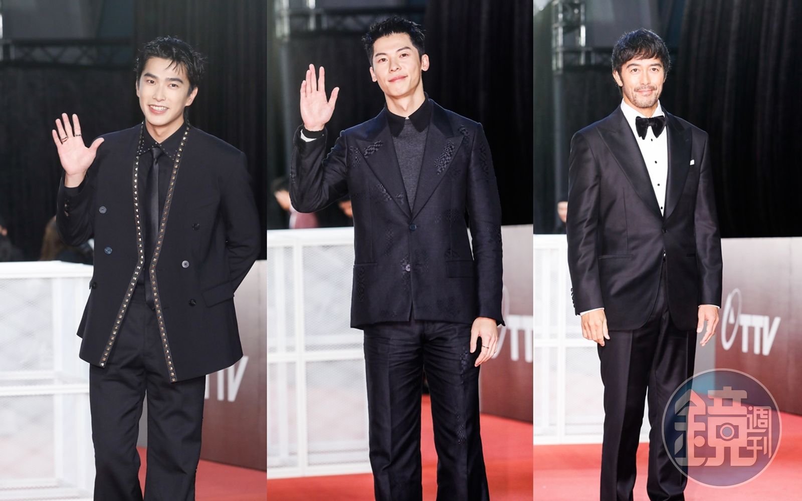 金馬獎紅毯男星,正在服兵役的許光漢請假到金馬獎頒獎,一身FENDI黑色西服,配上略短的頭髮,吸引外面等待的粉絲的大量尖叫。而張震、曾敬驊也同樣以全黑服裝現身。