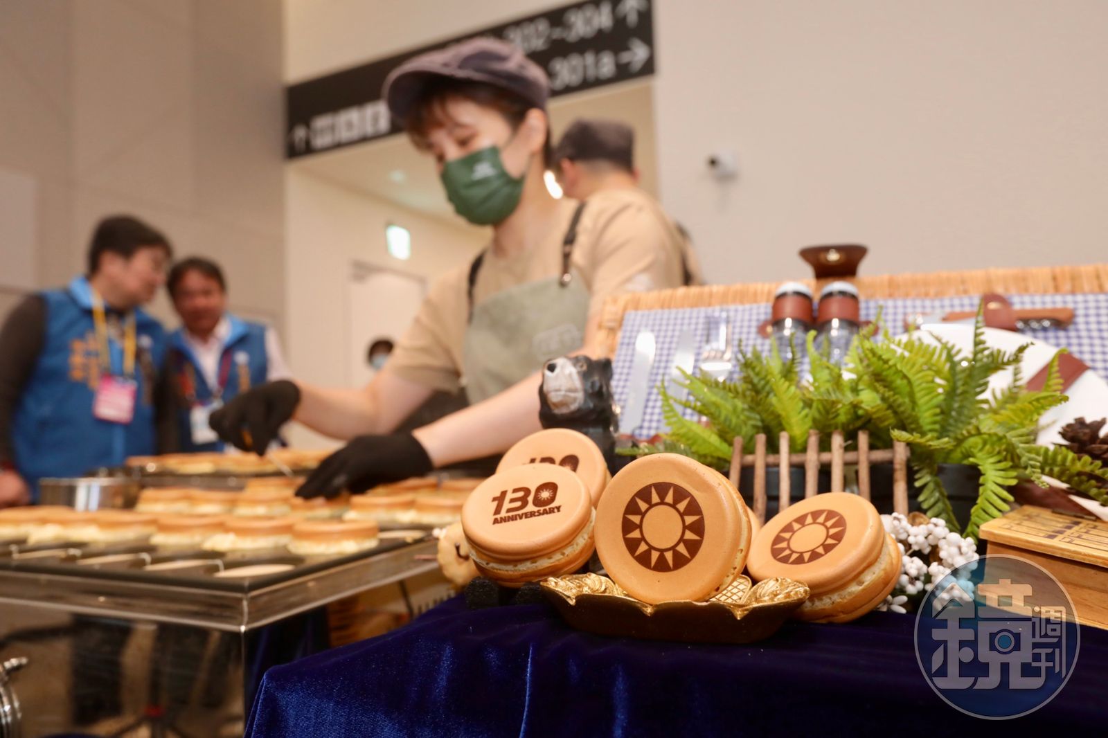 國民黨全代會今(24日)在桃園登場,同時慶祝130週年黨慶,現場販售多項文創小物,其中最吸睛的是限量車輪餅,過去不少網友形容國民黨的黨徽像車輪,被笑稱是「車輪黨」,國民黨此次乾脆把黨徽跟台灣小吃車輪餅結合,在黨慶現場販賣。
