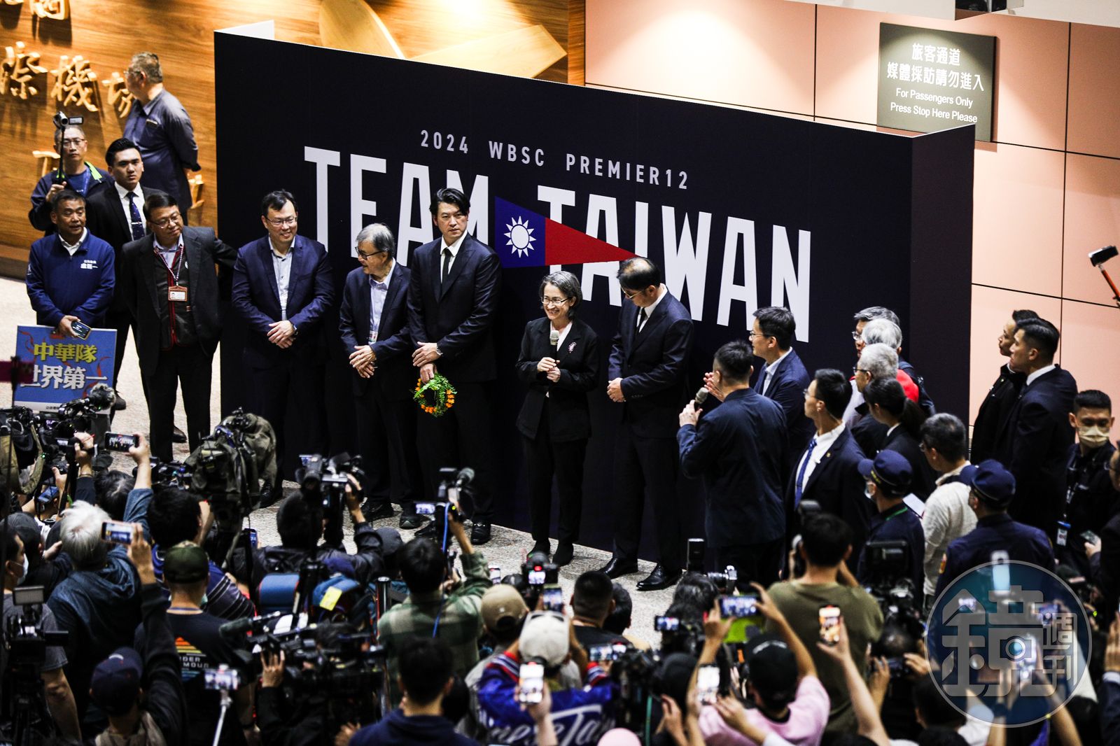 選手和教練們在今晚8點47分左右正式返抵國門,副總統蕭美琴前往桃園機場迎接,桃機今也比照奧運選手,向12強選手們的班機行水門禮。
