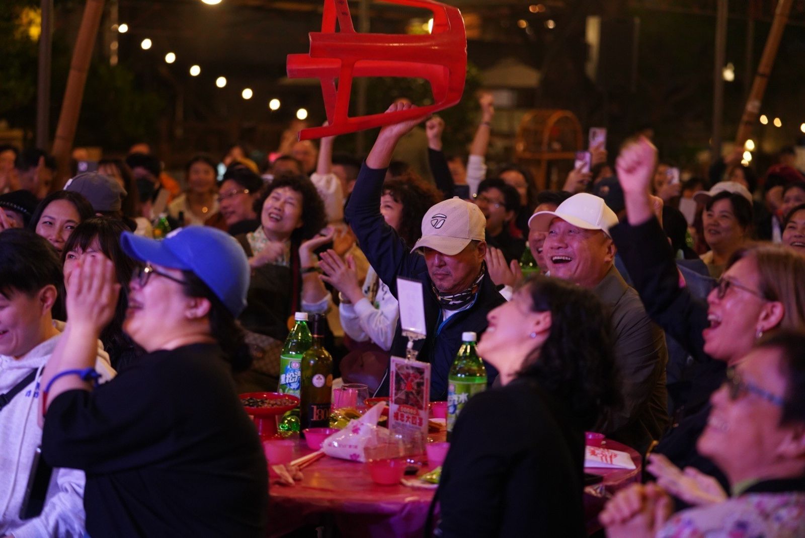 《一村喜事》2.0以民國68年眷村王村長嫁女兒為背景,觀眾坐在復古婚禮的辦桌上,不僅能吃到現場烹飪的經典喜宴菜色,桌上還擺有當年婚宴必備的黑松汽水,彷彿穿越時空回到那個年代。劇中安排了一位「預視能力」的司儀角色,他慶賀中華小將當年奪得威廉波特冠軍的同時,也「預見」45年後的今天,台灣隊與日本爭奪世界冠軍。司儀三度衝上台播報比賽戰況,當台灣隊以兩支全壘打取得4:0領先時,全場觀眾情緒沸騰,場面歡欣鼓舞。