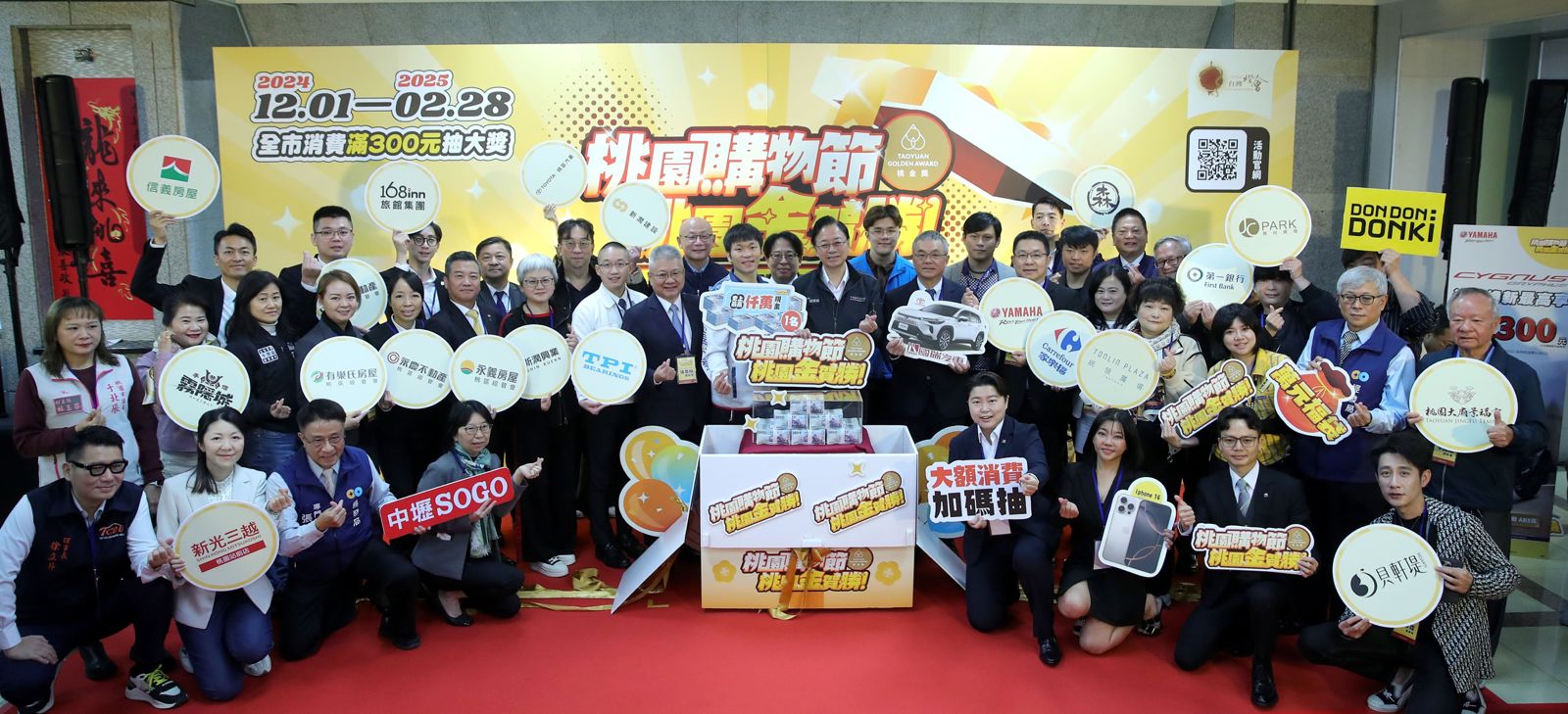 為了回饋消費者,本次購物節推出破紀錄大獎「壓軸抽」,規劃有百萬名車、十萬重機、以及價值超過萬元以上的福袋。活動期間特別邀請在地企業共襄盛舉,信義房屋贊助總額20萬元的「贊助企業加碼抽」,提供最新iPhone 16 Pro及iPhone 16各三台,讓民眾購物享好康之餘,還能把最潮好禮帶回家。