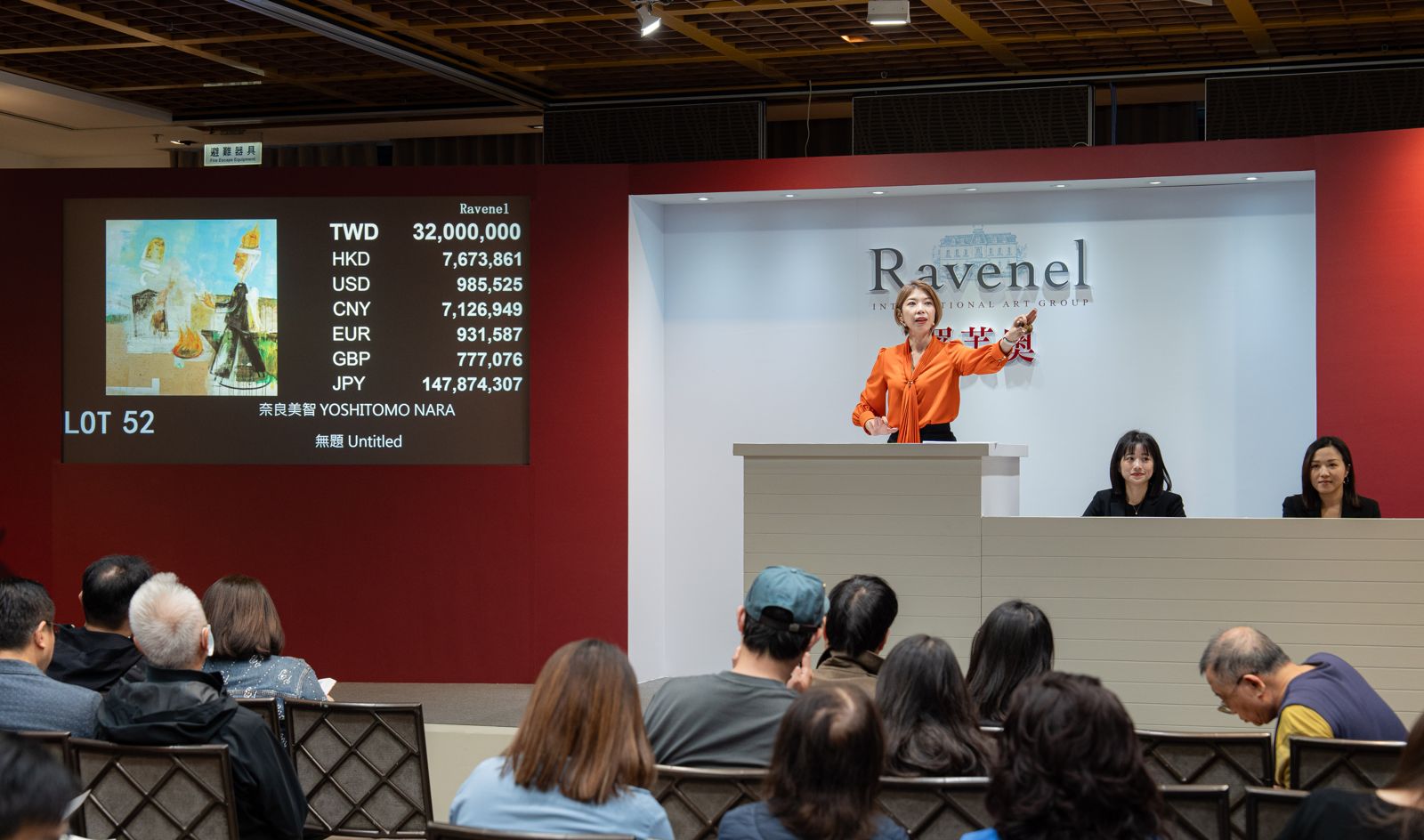 本次羅芙奧「現代與當代藝術」拍賣中,雙封面拍品奈良美智早期1987年作品《無題》,以新台幣3,840萬元成交(含買方服務費,以下成交金額皆含買方服務費),為當日最高價拍品。另一件封面拍品,趙無極1960年代巔峰狂草時期小油畫《18.10.68》,以新台幣2,400萬元為書面委託的藏家順利標走;YBA英國當代藝術家達明.赫斯特(Damien Hirst)精緻的蝴蝶系列作品《可愛與體貼》,以新台幣2,160萬元成交。