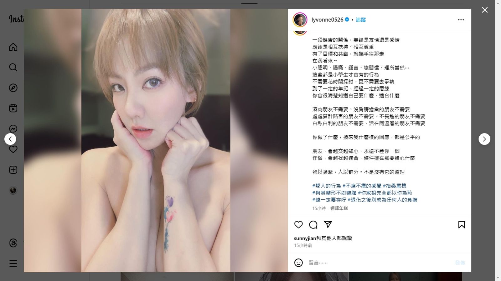 不僅如此,劉雨柔也說道:「在我看來~小聰明、隱瞞、謊言、壞習慣、理所當然…這些都是小學生才會有的行為,不需要花時間探討,更不需要去爭執,到了一定的年紀、經過一定的磨練,你會很清楚知道自己要什麼、適合什麼。」