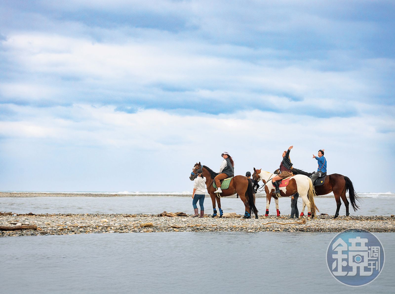 與一般馬場的環境不同,野生活的騎乘路線可延伸至花蓮海岸線。當馬蹄「喀踏!喀踏!」踩在柔軟沙灘上,海風撩動髮絲,洶湧波濤拍打岸上的聲音從身後傳來,這才發現坐在馬背上的我,正以馬兒的視角重新探索花蓮的自然美景與快樂。