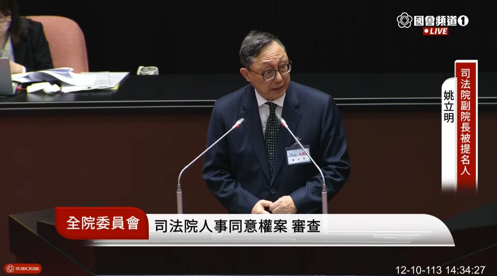 姚立明今在立法院針對被提名為司法院副院長一事進行報告,他提到,他專研憲法,深知憲法保障新聞自由的真諦,又因充分了解媒體環境或內部運作狀況,才知道台灣的新聞自由還有一大部分沒有實現,他相信以他的政治經歷,有助於未來憲法的解釋。