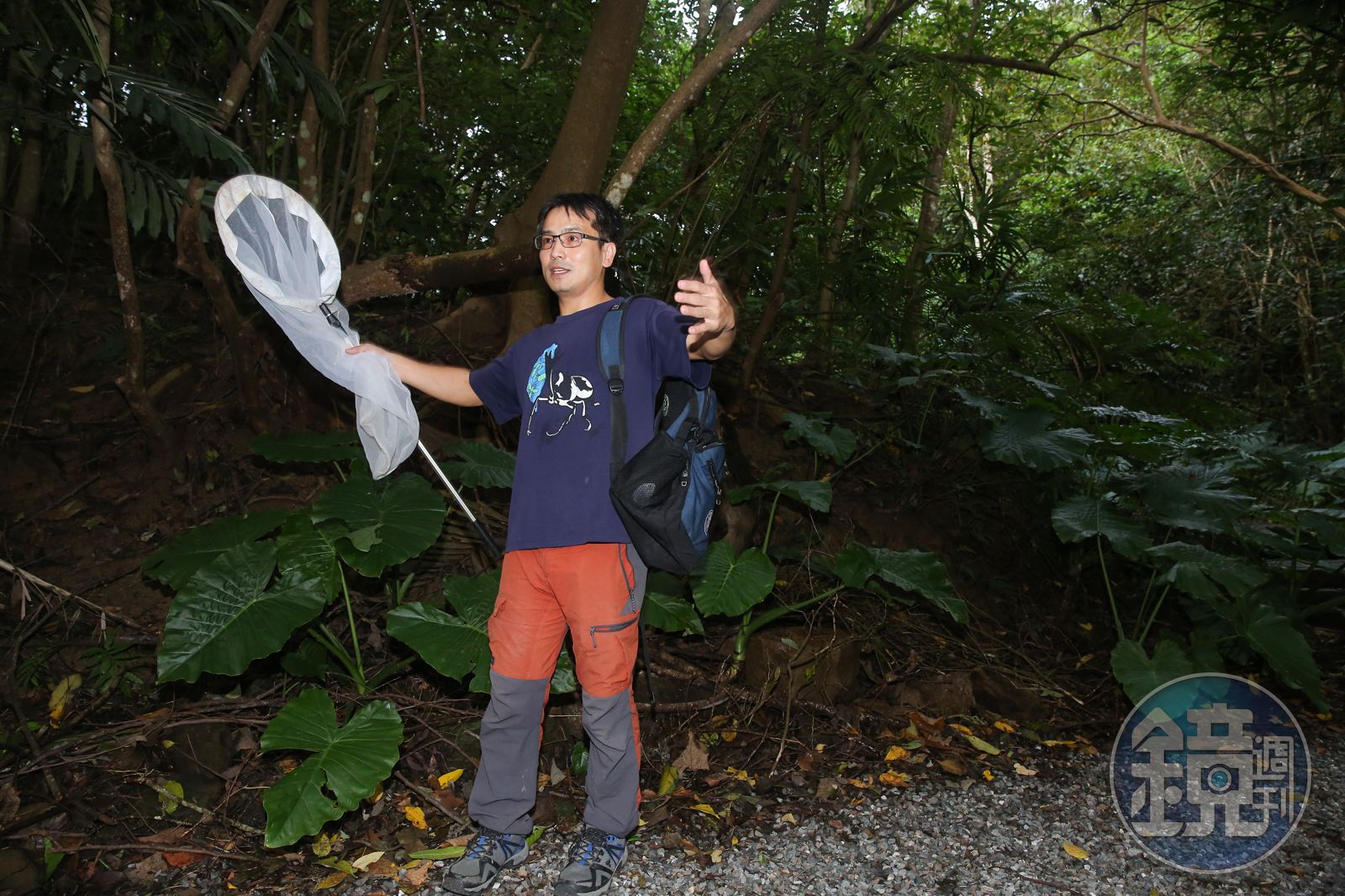 當天正逢康芮颱風過後,柯心平信手捻來就是生態教育,他指著一根倒塌巨樹樹根說:「跟你說一個衝突的觀念,我們常常說,因為被砍掉或台灣山坡地改種檳榔,所以造成土石流,但你看這棵樹,夠大了吧,也是原生植物,遇到很大的颱風還是會倒,當然檳榔會影響,但真正大的問題是大規模開發、礦業之類的,那些才是最大的問題,但我們很常怪罪一個最好怪的。」