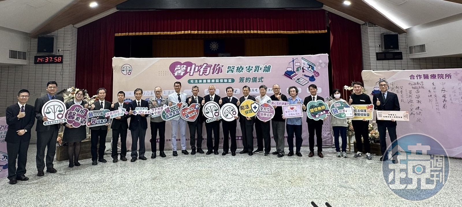 「司法保護醫療關懷聯盟簽約儀式」活動,由台中市政府衛生局協助串連,於昨(11 日)下午在台中司法大廈大禮堂舉辦「司法保護醫療關懷聯盟簽約儀式」活動,邀集台中市各大醫師公會、醫學中心、大型醫院、地區醫院及診所等共同簽署合作備忘錄,聯合啟動「馨中有你,醫療零距離」台中司法醫療關懷聯盟,提供犯罪被害人(馨生人)及其家屬在各階段之完善醫療支持,共築「不再看病路遙遙」「從兒童至成年」「零距離」之醫療關懷。