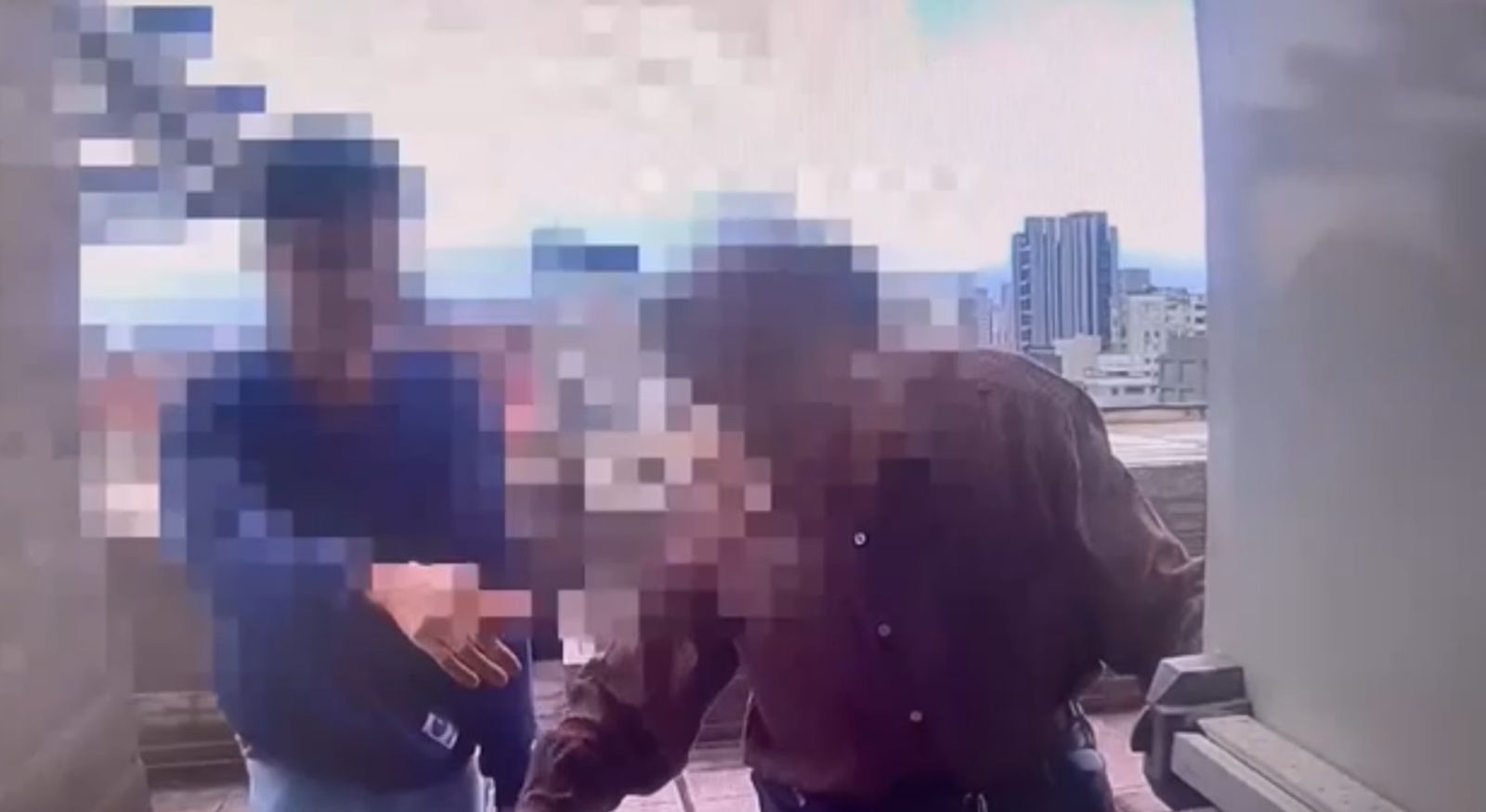 蔡男緊張之餘,不斷大聲呼救,也多次敲門求援,不過因該大樓位在師大商圈,白天人車聲嘈雜,無論蔡男如何呼救都無人聽見,所幸蔡男發現樓下有警察經過,大聲呼喊:「警察救我」,北市警大安分局和平東路派出所警員張恆偉巡邏經過,聽到蔡男呼救,立即聞聲辨位,最終通知大樓管理員,一起到頂樓協助蔡男脫困解圍。