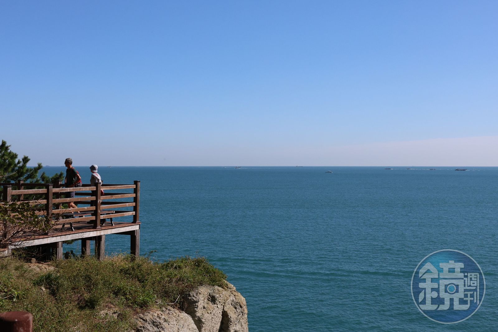 在開始「考驗腿力」前,記得先到免費的「五六島Skywalk」,感受被韓國人稱為「行走在天上」的天空玻璃步道。高達35公尺的懸崖上,24片防彈玻璃組合成長15公尺的馬蹄型步道,透過腳下的玻璃,可看見驚滔駭浪拍向岩壁,很有刺激感。據說此處的風景因季節、天氣及時間點差異,有著截然不同的風光,需要親自前來才能感受。