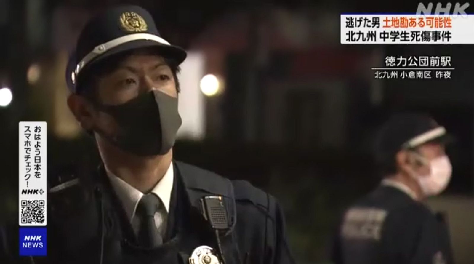 當地警方目前也持續戒備當中,福岡縣警察總部在事發周邊加強巡邏,特別是上下課期間和夜間,警察也在附近的單軌電車站不斷提醒民眾夜間獨自行走時要注意安全。警方表示,已從縣內各地調派支援警力,目前北九州市內有200多名警察處於戒備狀態。