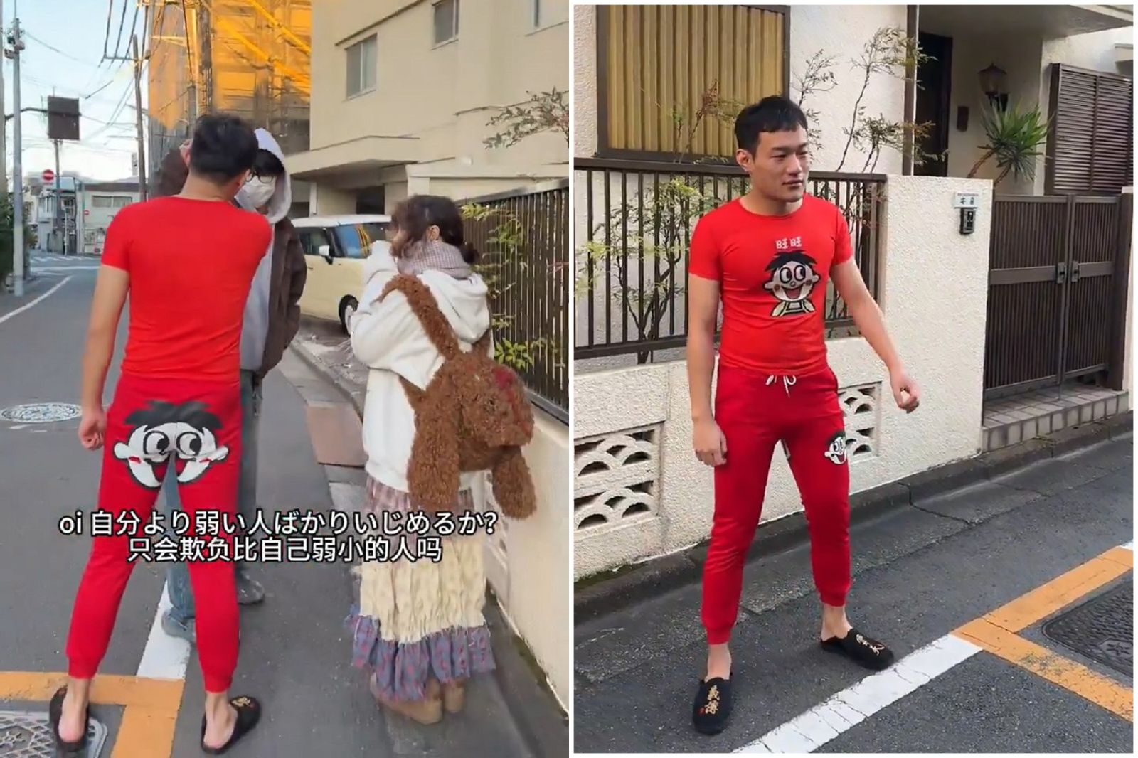 影片可見,有兩男一女中國演員與拍攝者,在日本一處寧靜的住宅區街頭,拍攝短片。由於劇情內容為一名「黑道男子」被女生撞到後,大聲咆哮,隨後又有一名紅衣男出面解圍,因此3人就在寧靜的社區中,製造吵雜噪音,最後現場還播放音樂,讓紅衣男跳舞。