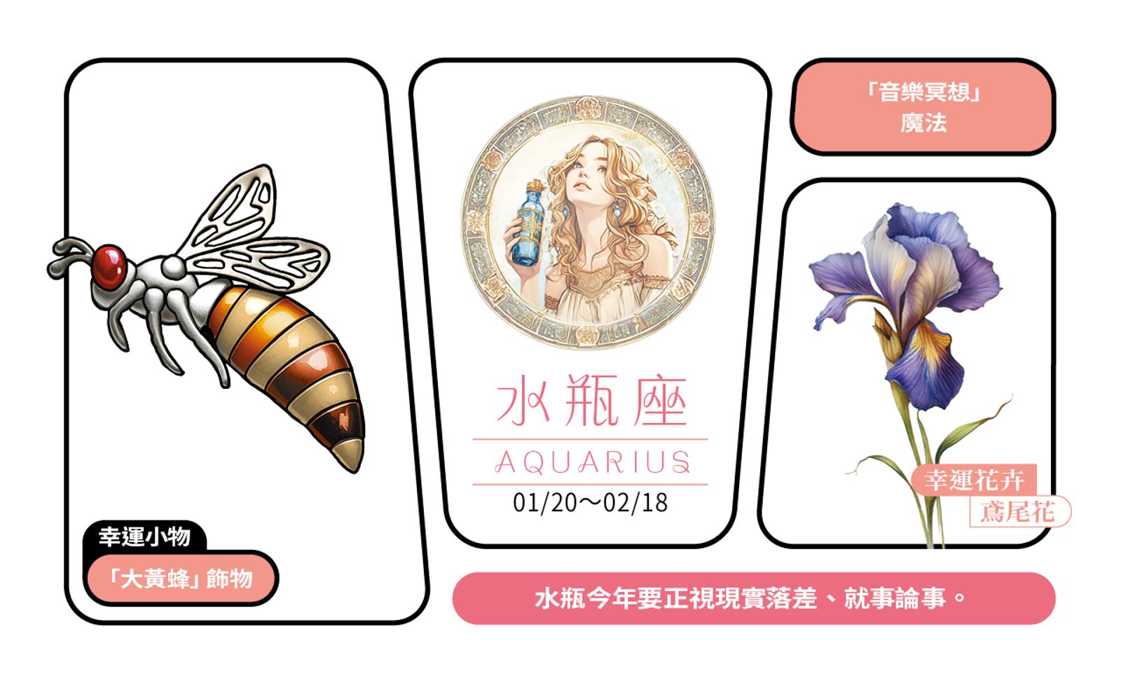 2025年健康是水瓶的重頭戲。也恐會是快速變老的轉捩年。沉重壓力勢將成為生活日常,且過度思考易引發失眠或焦慮。宜注意心理健康,保持樂觀心態,藉助愛情或規律運動平衡情緒、降低失智風險。多吃莓果、巧克力、肉桂、雜糧和魚油護腦,避免甜食。可藉爬山、跑步、泡澡、按摩與伸展紓壓。