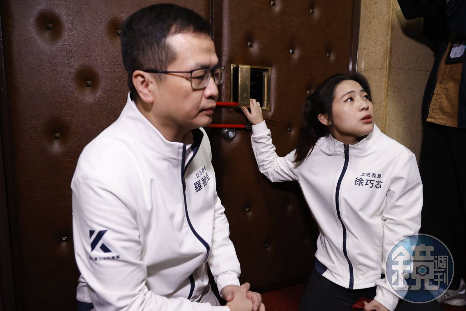 為了防止國民黨以人數優勢強行輾壓修法,民進黨立委昨闖進議場,封住議場大門希望阻止藍營進入開會,徐巧芯、高金素梅等人一早試圖破壞門鎖,但未能成功。