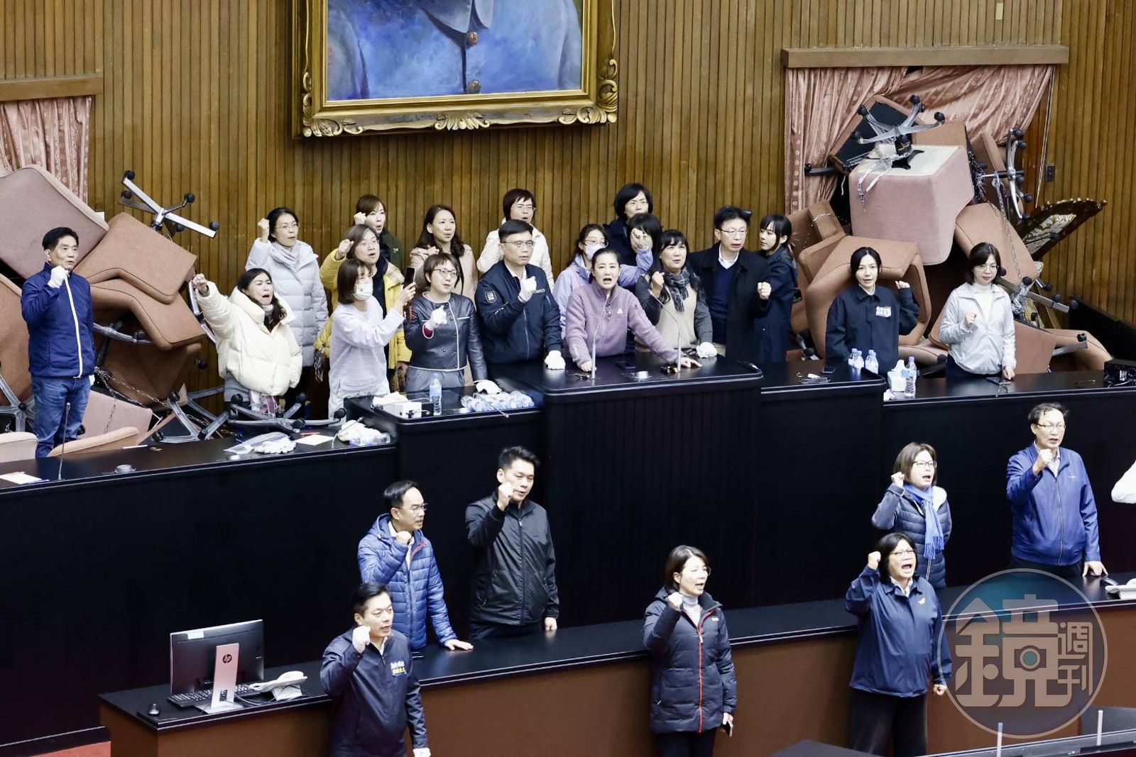 國民黨團欲挾人數優勢,在今天的立法院會通過《選罷法》《憲訴法》《財劃法》等修正草案,引發綠營強烈反彈,昨晚破窗闖入議場,試圖阻擋藍營強勢修法。