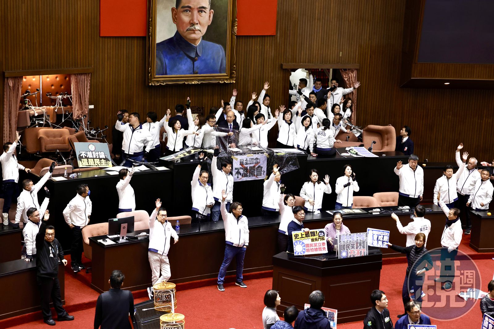 綠委黃捷今在議會上發言,提到國民黨一直糾結「為什麼民進黨把立法院搞成這樣?」她強調,但人民更想問的是,「白爛的白藍黨,為什麼把國家搞成這樣?」她認為現在的國民黨比5月提「國會擴權」時期,更邪惡、更可怕了,到現在還在訕笑人民,說人民上街是求職求官,「真正求職求官的,想當台灣特首的,是炒股犯、賣國賊傅崐萁。」