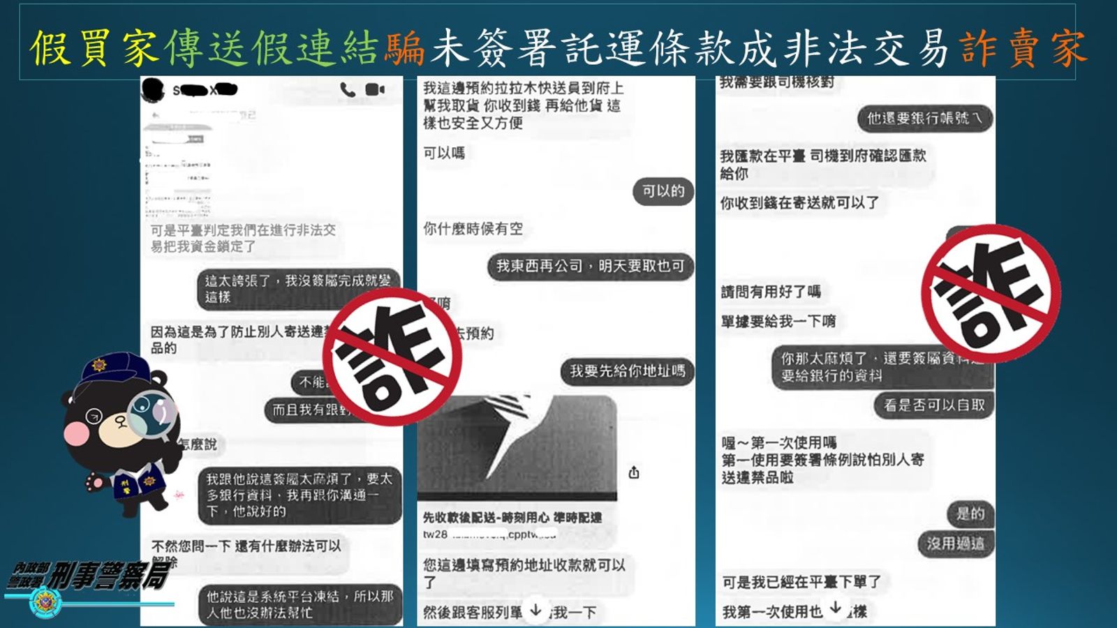 另北部一名年26歲張姓男子,上週收到買家私訊表示欲購買在臉書販售商品的電腦螢幕,並要求透過宅急便寄送,假買家再傳送宅急便連結網址,張男點擊登入該連結網址後又跳出自稱銀行行員通訊軟體LINE,假客服與張男通話教導開通宅急便,對方再以張男未有宅急便權限為由,要求張男以網路銀行及ATM轉帳17筆至指定帳戶。