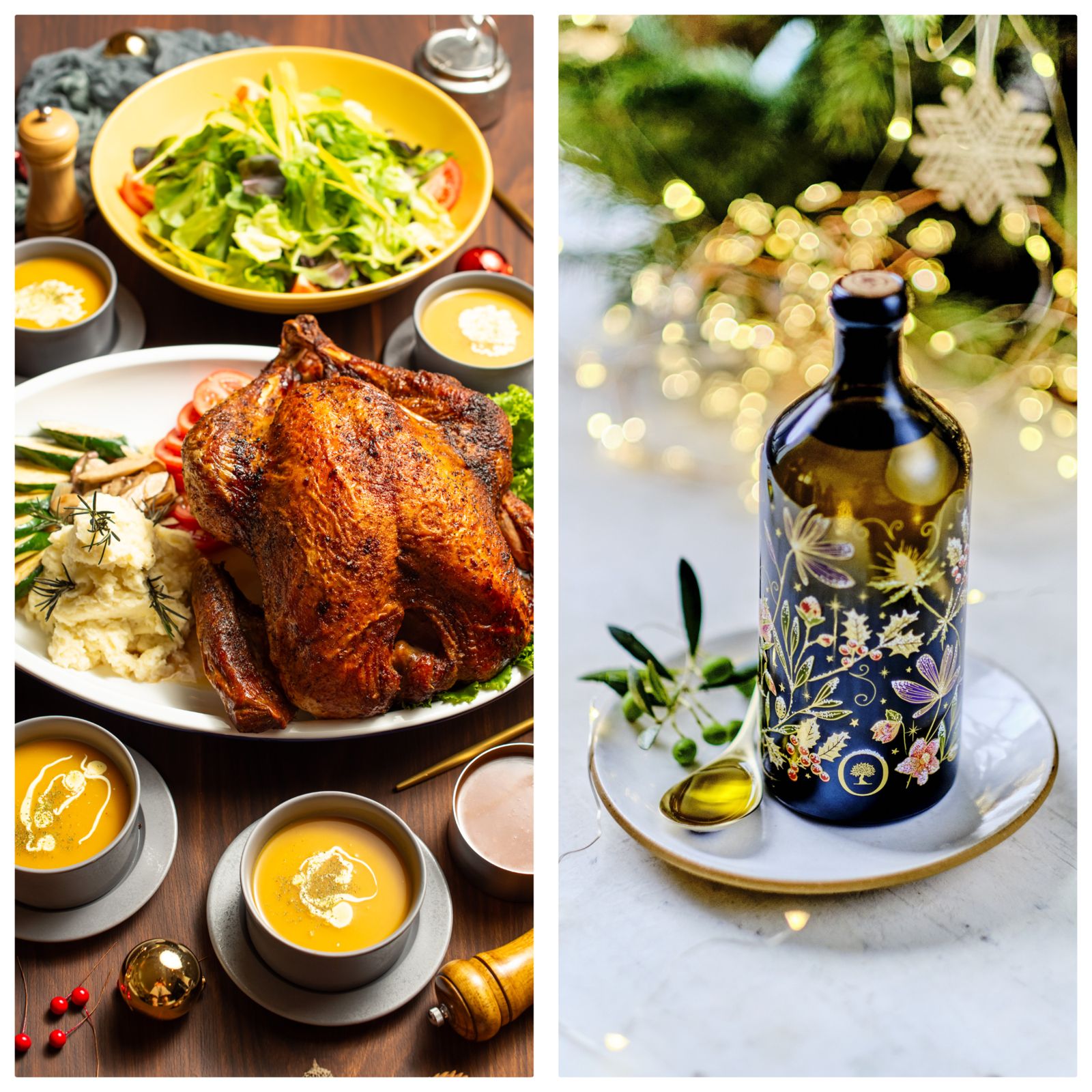 來自義大利普利亞沙賓諾里昂尼橄欖莊園、屢獲紐約橄欖油大賽金獎的「耶誕限量設計橄欖油」,深綠色瓶身烙印著象徵歡聚耶誕佳節的聖誕玫瑰、冬青和橄欖枝,色彩繽紛為味蕾和視覺帶來愉悅的心情,是歲末料理最佳的佐味幫手,也是放在耶誕樹下最完美的禮物。