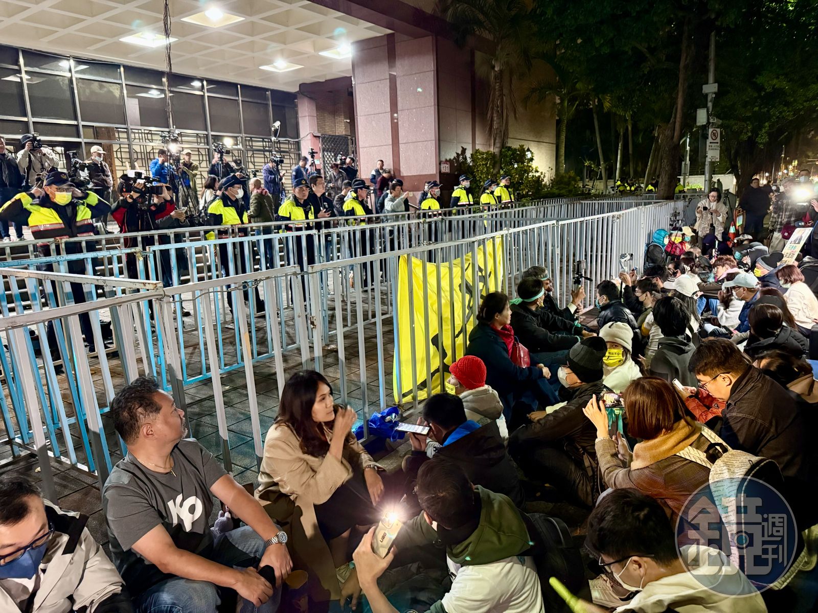 柯文哲支持者衝北檢集結席地唱歌 警第一次舉牌警告:退回禁制區外