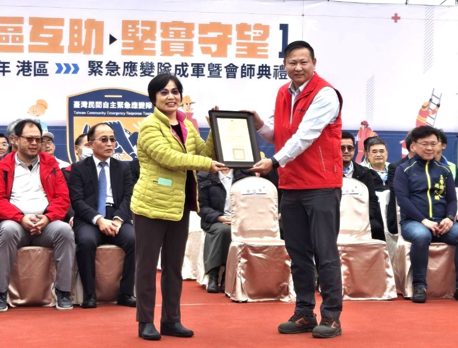 劉世芳表示,為降低災害後的第一時間傷亡,內政部今年推動「建置台灣民間自主緊急應變隊中程計畫」(Taiwan Community Emergency Response Team,T-CERT),依原訂計畫已培訓完成來自「國家重要場域」及「港區關鍵企業」的80支T-CERT應變隊伍,包含港區部分的15支隊伍。