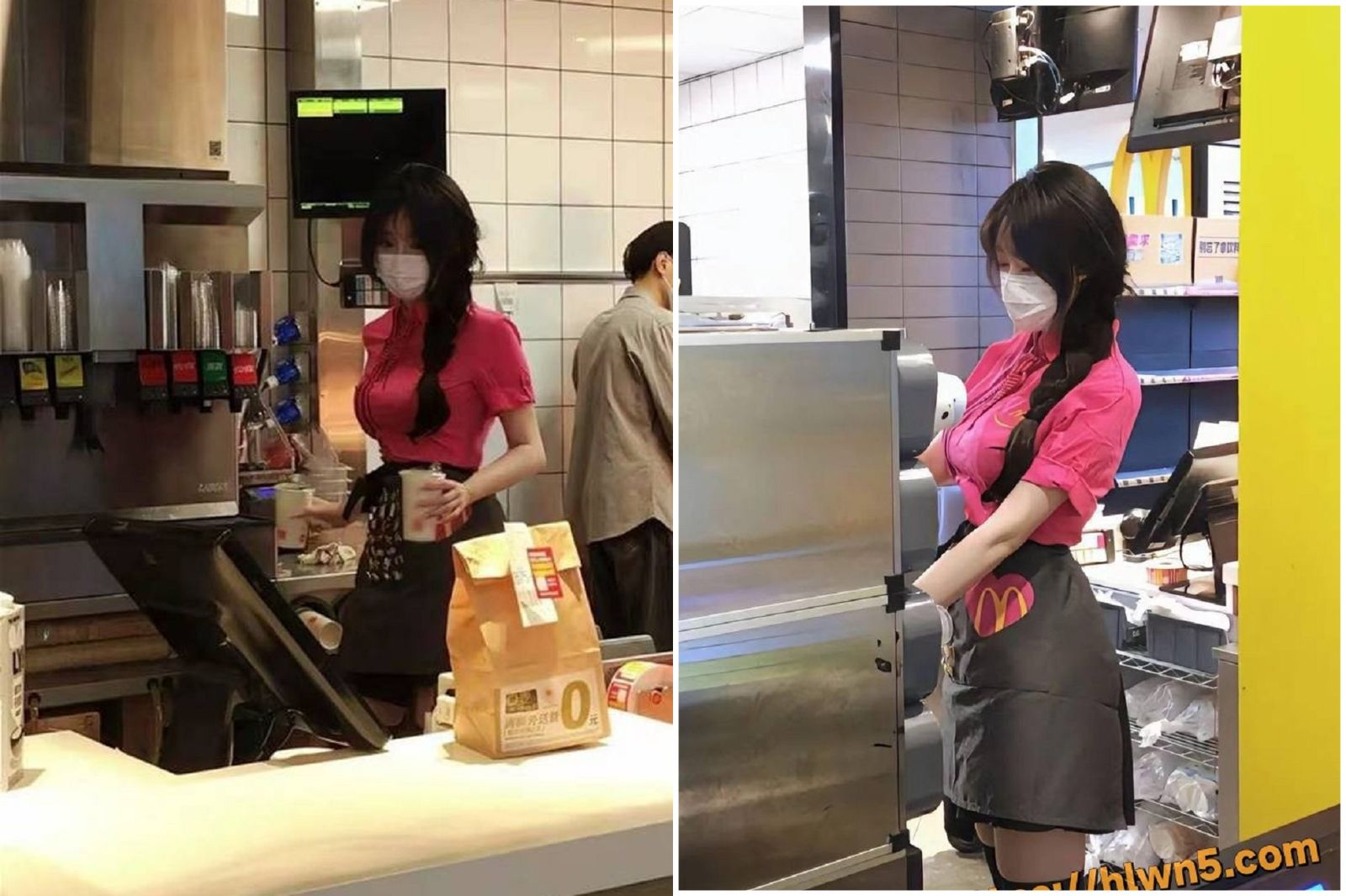 就有網友指出,在廣州白雲的一間商場內的麥當勞,有一名性感正妹店員出沒,打扮得相當漂亮在為客人服務。目前未知這名正妹是真的麥當勞員工,還是特意來擺拍宣傳,但這組圖片在近日被許多中國網友瘋傳。除此之外,網傳的影像也可見,還有網黃故意穿著繡有麥當勞圖騰的「制服」,來拍攝AV,引來網友關注。 就有網友直呼:「害我現在想吃麥當勞。」、「原來麥當勞這麼有魅力!」另外也有網友認為,麥當勞的品牌辨識度高,因此也容易被網美或情色界利用。