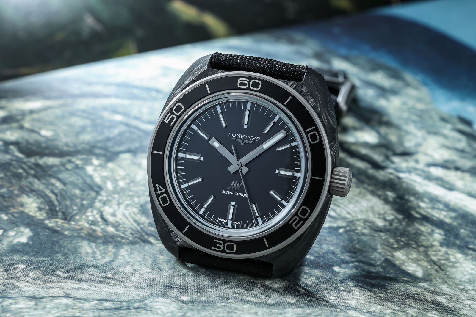 時隔兩年多,浪琴總算為Ultra-Chron超級天文台腕錶增加新款式,換上鍛造碳纖維材質錶殼。鍛造碳纖維材質的超強韌性與輕盈特性,過去廣泛使用在航空業,最早則是由AP愛彼把這項材質引進手錶製程裡頭,之後則零星出現在許多頂級品牌當中。近幾年鍛造碳纖維逐漸下放至入門中價位品牌裡,甚至SWATCH集團的天梭(TISSOT)、美度(MIDO)也開始使用,話雖如此鍛造碳纖維仍未能稱得上「普及」,尤其之後鍛造碳纖維也開始延伸出新的顏色或不同特性,仍然僅有少數品牌才有使用。