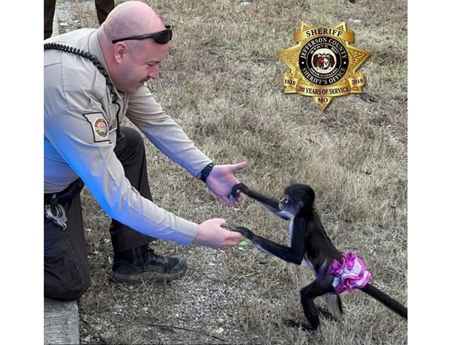 據英國《每日郵報》報導,傑弗森郡警方(Jefferson County Sheriff's Office)獲報,有一名飼主的寵物蜘蛛猴離家後失蹤,請求警方協尋。警方隨後派出人力搜索,並鎖定聖路易斯地區南方的兩處高速公路處搜尋,最後成功發現這隻猴子的蹤跡。