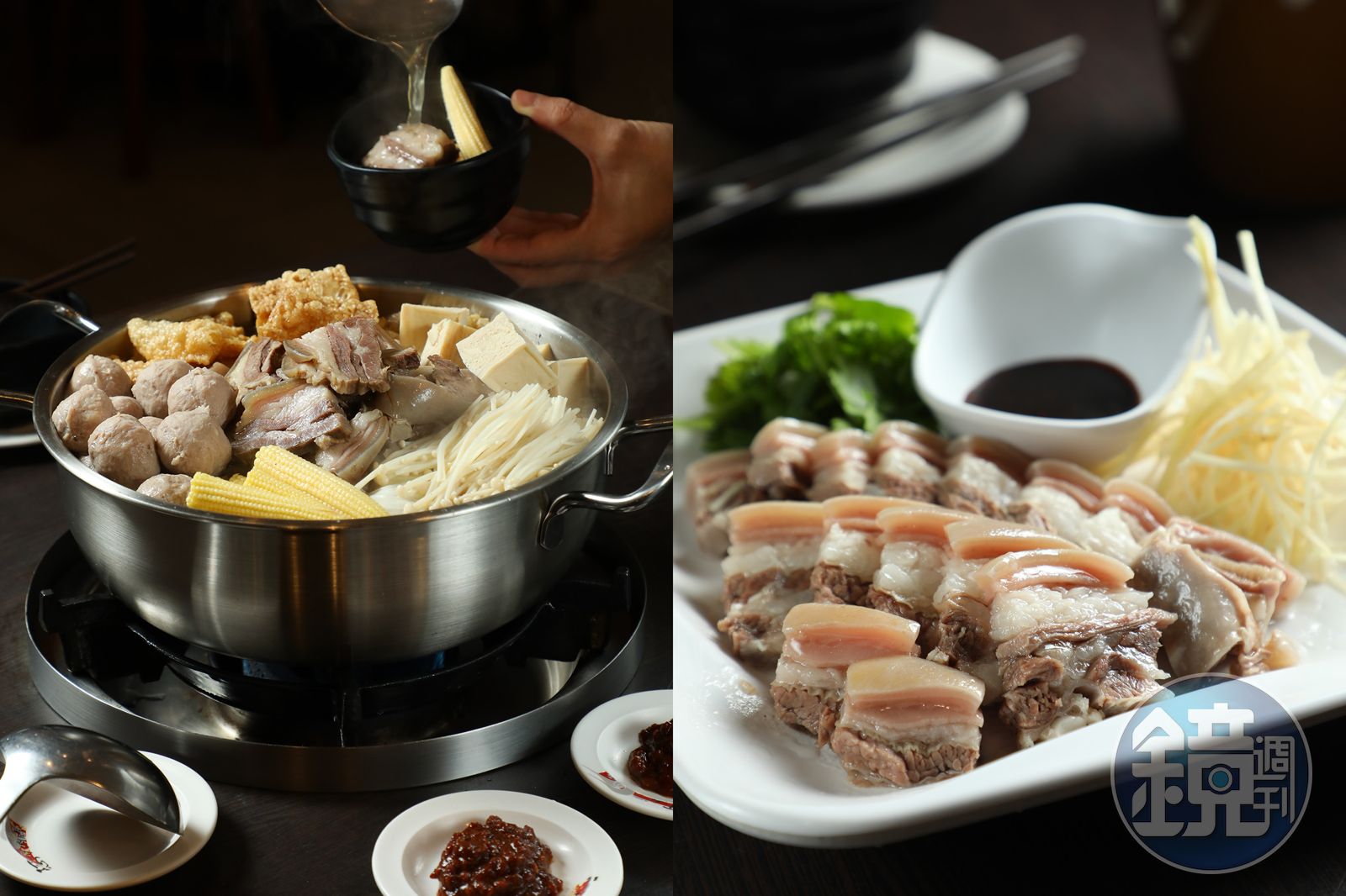 阿忠的「年菜組合餐」能吃到多款蔬菜與羊肉丸。(1,888元/份、約3~5人份)「年菜組合餐」包含肉質甘甜的「嫩羊肉」(前)、帶有骨香的「肋排肉」(後)等。(2,888元/份、約6~8人份)去年回家幫忙父親的二代阿愷分享,店內挑選食材非常嚴格,由於能善用羊的每個部位,加上用量大,因此他們每週約引進8隻整頭溫體羊進行分切。招牌菜「頂級嫩羊肉」位於里肌與腰內部分,數量少、肉質嫩,很容易賣完;位於腹脇的「白切三層肉」,則以西式烹調手法,用鹽水去炒,讓肉質保持多汁口感且外皮Q彈,沾上特製醬汁,讓人不小心就嗑完整盤肉。