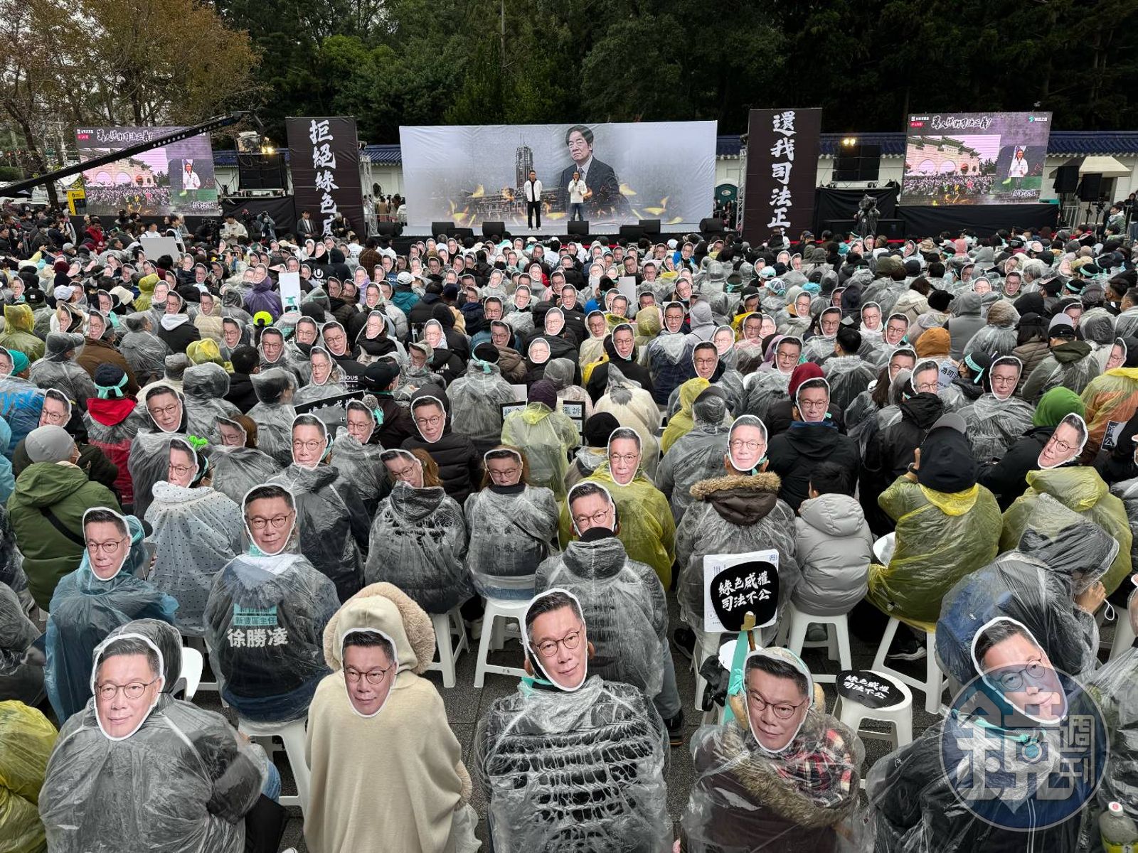 民眾黨大批支持者戴上柯文哲面具聲援。發布時間:2025.01.11 18:10 臺北時間