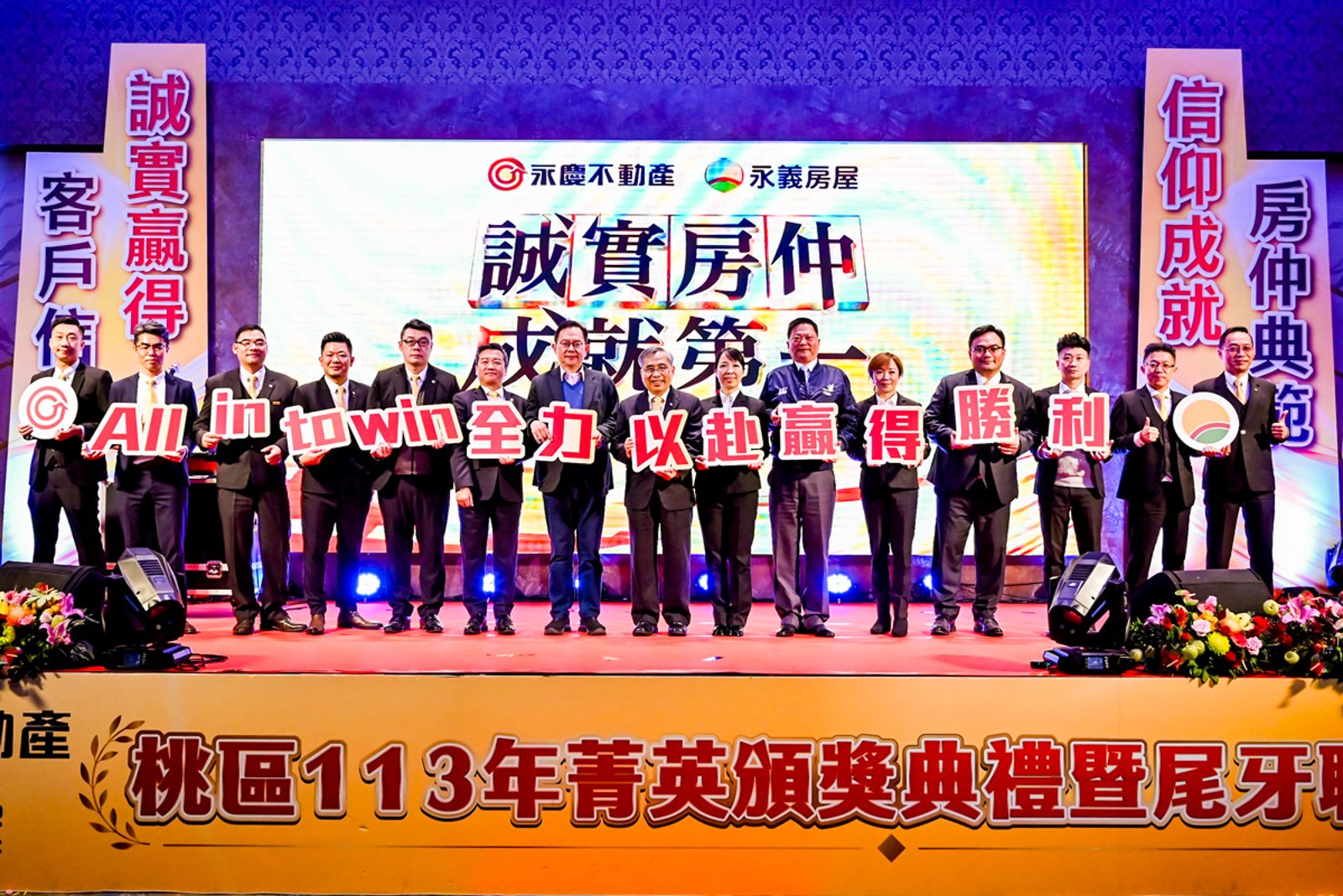 永慶不動產暨永義房屋桃園區經管會昨日(1/14)下午,在內壢海豐海鮮餐廳舉辦2024第四季表揚大會,晚上緊接著舉辦尾牙活動,共席開150桌,並邀請到桃園市政府地政局長蔡金鐘、立法委員萬美玲、桃園市不動產仲介公會理事長蕭順智等貴賓蒞臨同樂。永慶房產集團加盟事業處董事長劉炳耀致詞時表示,永慶不動產及永義房屋2024年成就非凡,不只新增店數超過20家,單店平均業績更高達4,300萬元,區域內就有6家店年度業績突破1億元、產生34位千萬業績經紀人員,超強實力讓同業刮目相看、值得驕傲!