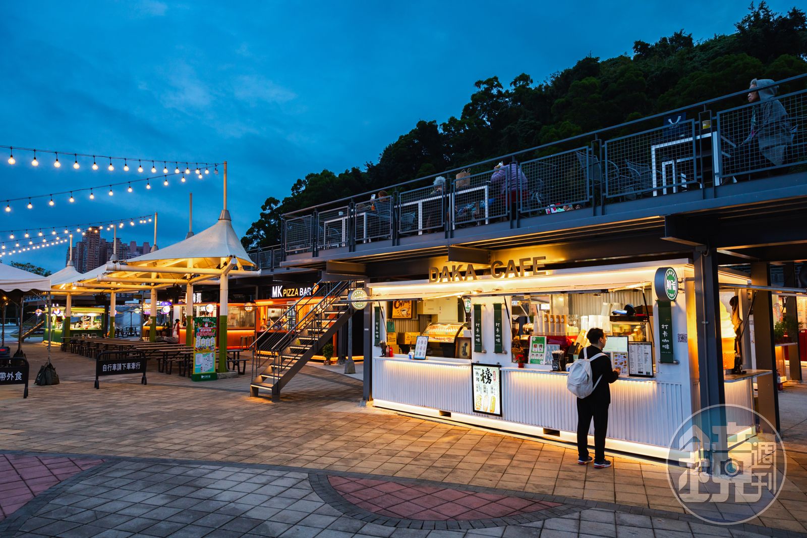 來到關渡還想嘗鮮更多美味,那就到關渡碼頭走走吧,為增添碼頭周遭多元化的休閒型態,台北市政府水利處請來「時藝多媒體」打造水岸新景點,「關渡碼頭貨櫃市集」已於2024年5月21日風光開幕,聚集許多異國美食,最適合一邊賞景,一邊環遊世界美食祭五臟廟。