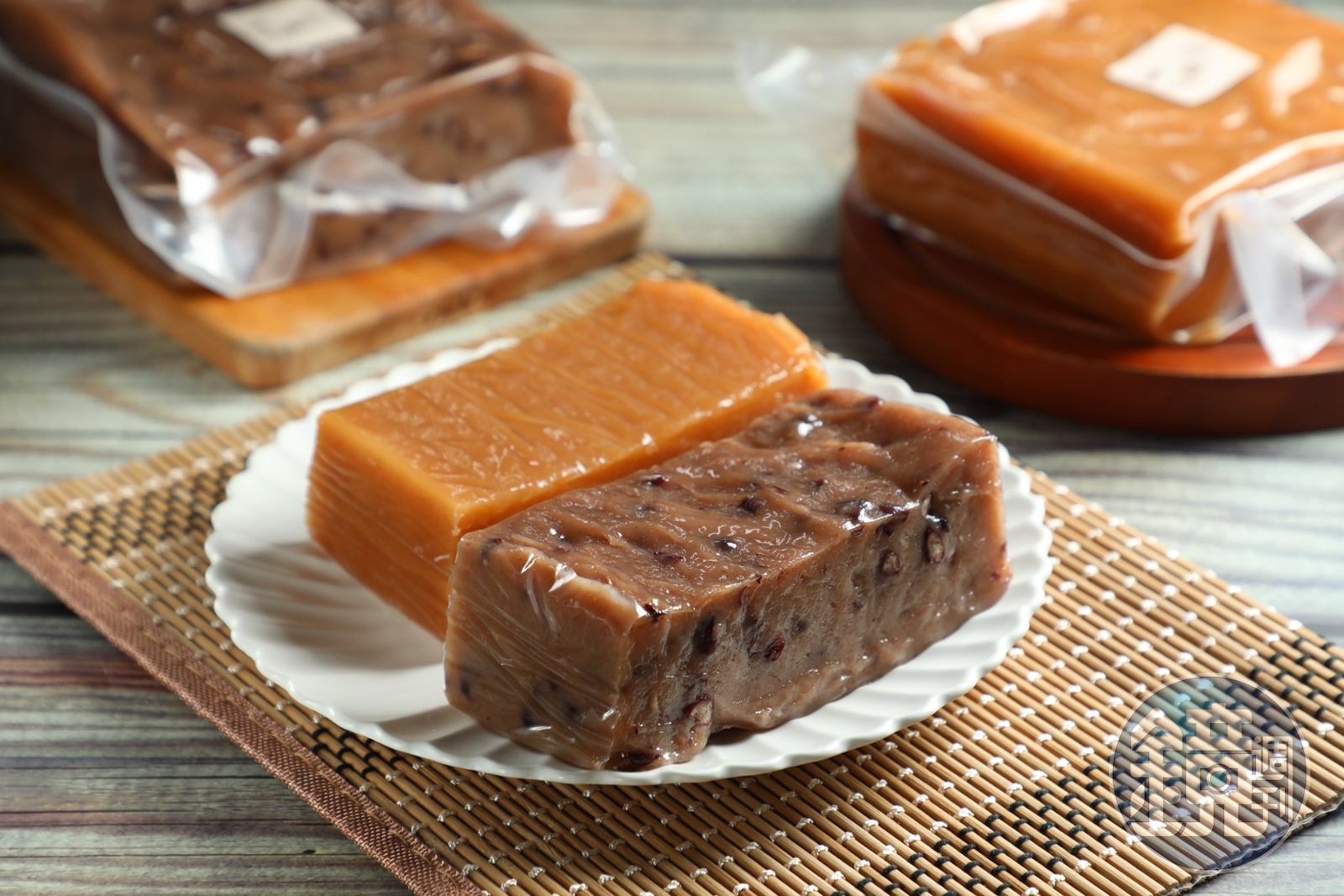 「艸頭厝」是台北「東湖市場」外的小攤位,平日就買得到各式傳統糕粿,過年更能吃到真正的年節古早味。圖為「紅豆甜年糕」(右,160元/600g)與「甜年糕」(左,150元/600g)。發布時間:2025.01.21 05:47 臺北時間