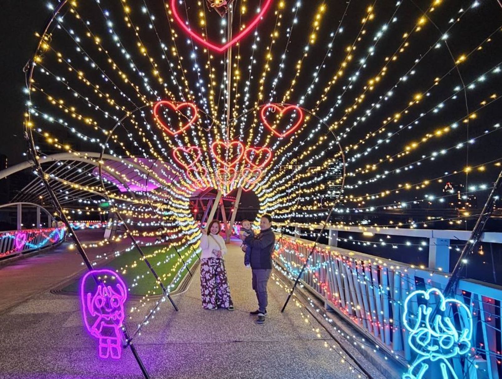 高灘處補充說明,辰光橋光雕展從1月25日起至3月23日止,每日亮燈時間為晚上5點半至10點,展期橫跨春節、元宵節、西洋情人節及白色情人節,情侶們要把握展出時間。新北河濱公園可從白天玩到晚上,春節假期期間,來到新北大都會公園遊玩時,不妨駐足到夜間感受辰光橋浪漫的光雕展,度過充實又浪漫的假期時光。