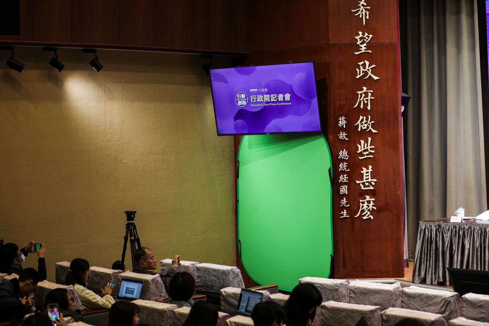 行政院長卓榮泰昨天與相關部會首長召開記者會,重申預算被大砍將嚴重影響政府各部會的施政。記者會現場原本有一塊留給手語同步翻譯的位置,昨也空了下來,政院發言人李慧芝表示,因為新聞傳播處的預算被在野黨全數刪除,無法聘用手語老師,對聽障朋友很抱歉。