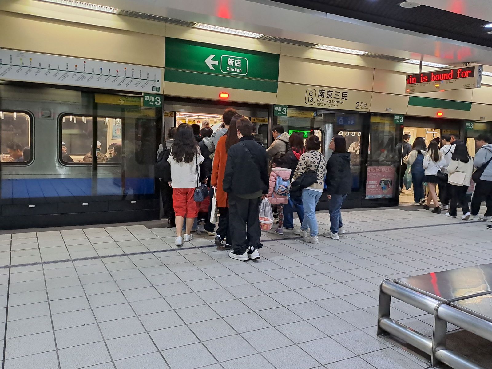 台北捷運公司指出,今(25日)至初五(2月2日),台北捷運各路線均採假日班距運行,文湖線、淡水信義線、松山新店線、中和新蘆線、板南線各主線平均班距約2.5至9.5分鐘,深夜時段班距約12分鐘,並視人潮情形彈性調整班距;新北投及小碧潭支線全天班距約10至20分鐘。捷運營運詳細資訊可下載「台北捷運Go」App查詢。