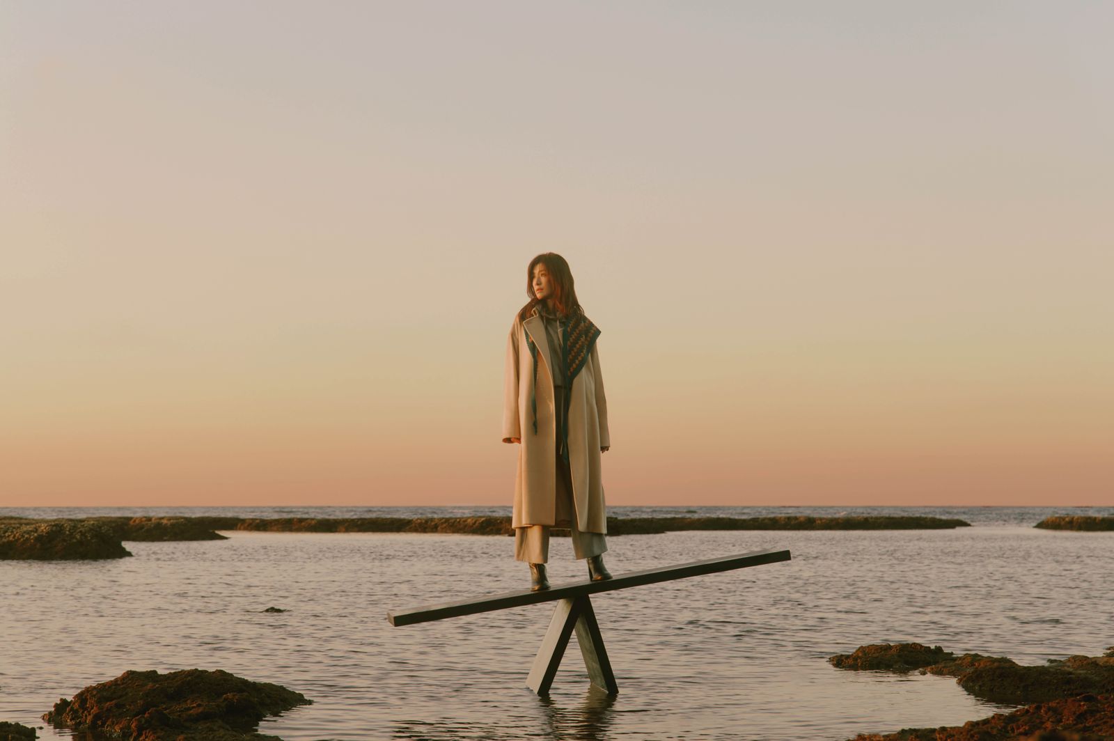 蘇慧倫新專輯集結陳君豪、葛大為、張震嶽、HUSH、告五人雲安、林家謙等創作人聯手打造。(相信音樂提供)專輯封面拍攝也充滿寓意,蘇慧倫站在海上的蹺蹺板與吊床上,象徵生命起伏間的平衡。鐵粉發現,這與29年前〈鴨子〉MV中的翹翹板場景不謀而合,彷彿承接過往,展現深刻呼應。《輕重Aftersun》推出「生命餘溫之輕版」與「生命灼熱之重版」兩款封面,2月18日數位、實體同步發行,歌迷直呼「全都要」。